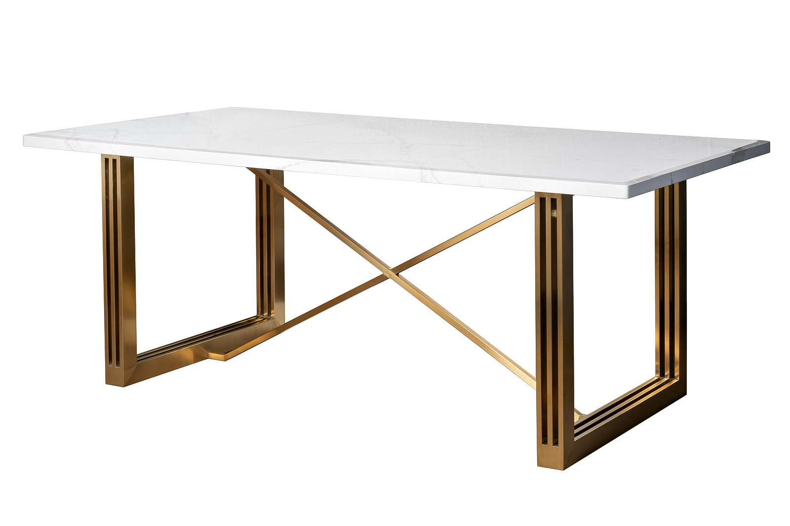30F-14780 Стол обеденный белый / браш.золото 200*100*76см