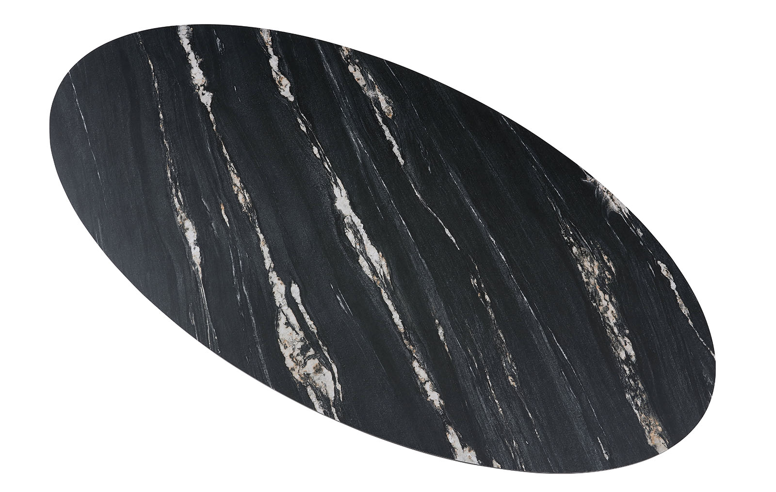 Основное преимущество такого стола – практичная керамическая столешница, отличающаяся износостойкостью, долговечностью, устойчивостью к внешним воздействиям, гигиеничностью, простотой в уходе. Такая столешница не впитывает влагу и легко очищается от загрязнений.
