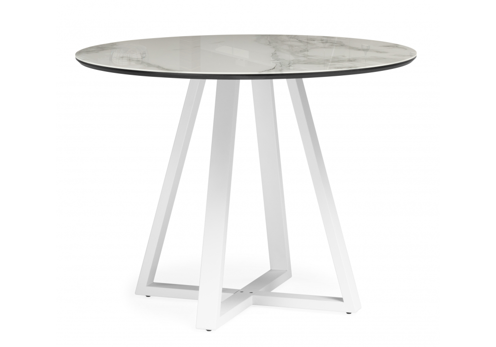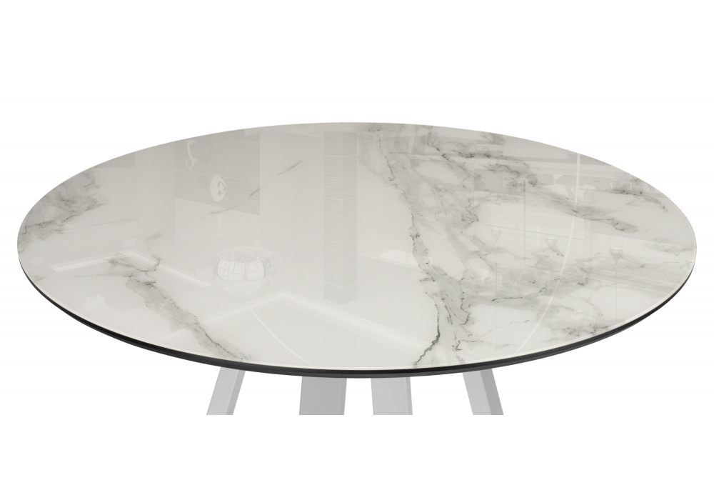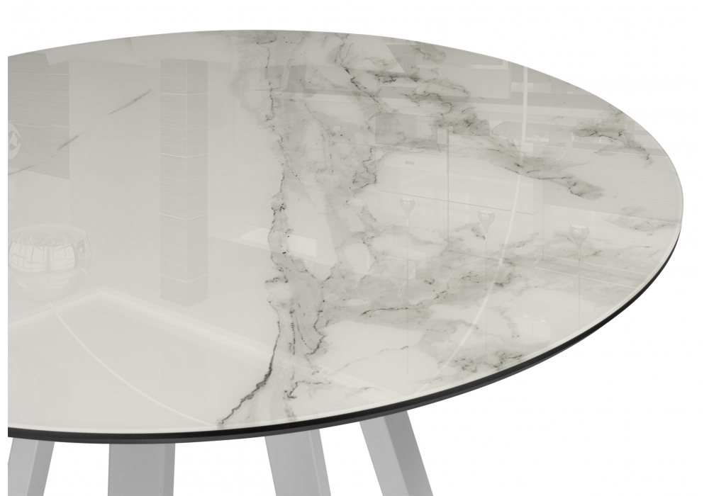 Стеклянный стол Норфолк d100 белый мрамор / черный