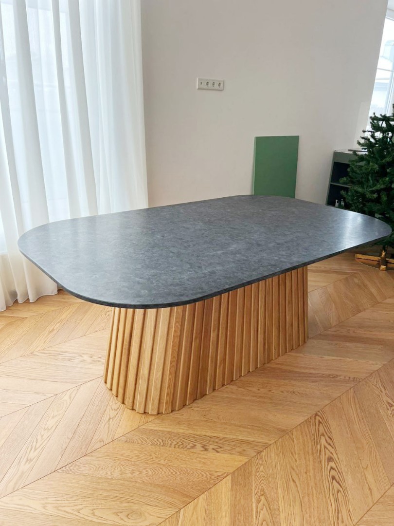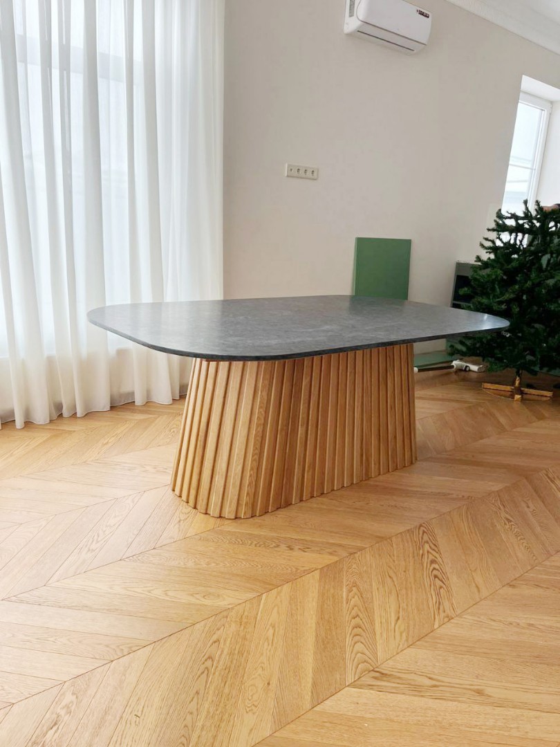 Эксклюзивный обеденный стол «Дуб & Гранит» — это воплощение роскоши и статуса. Для тех, кто ценит: