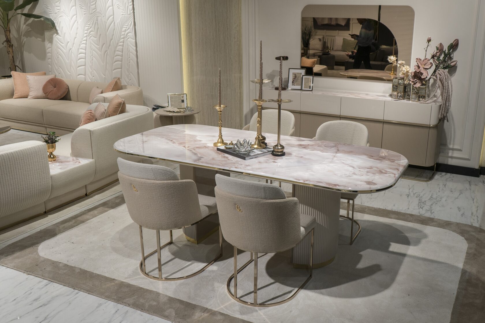 Запросить индивидуальное предложениеОбеденный стол создаст уют и атмосферу, изысканные цвета подобранные к необычной форме стола,стол идеально впишется в изысканность вашей гостиной