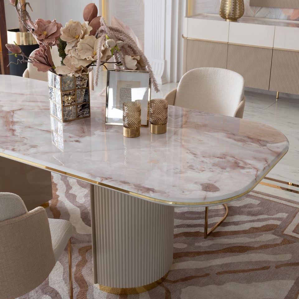 Запросить индивидуальное предложениеОбеденный стол создаст уют и атмосферу, изысканные цвета подобранные к необычной форме стола,стол идеально впишется в изысканность вашей гостиной