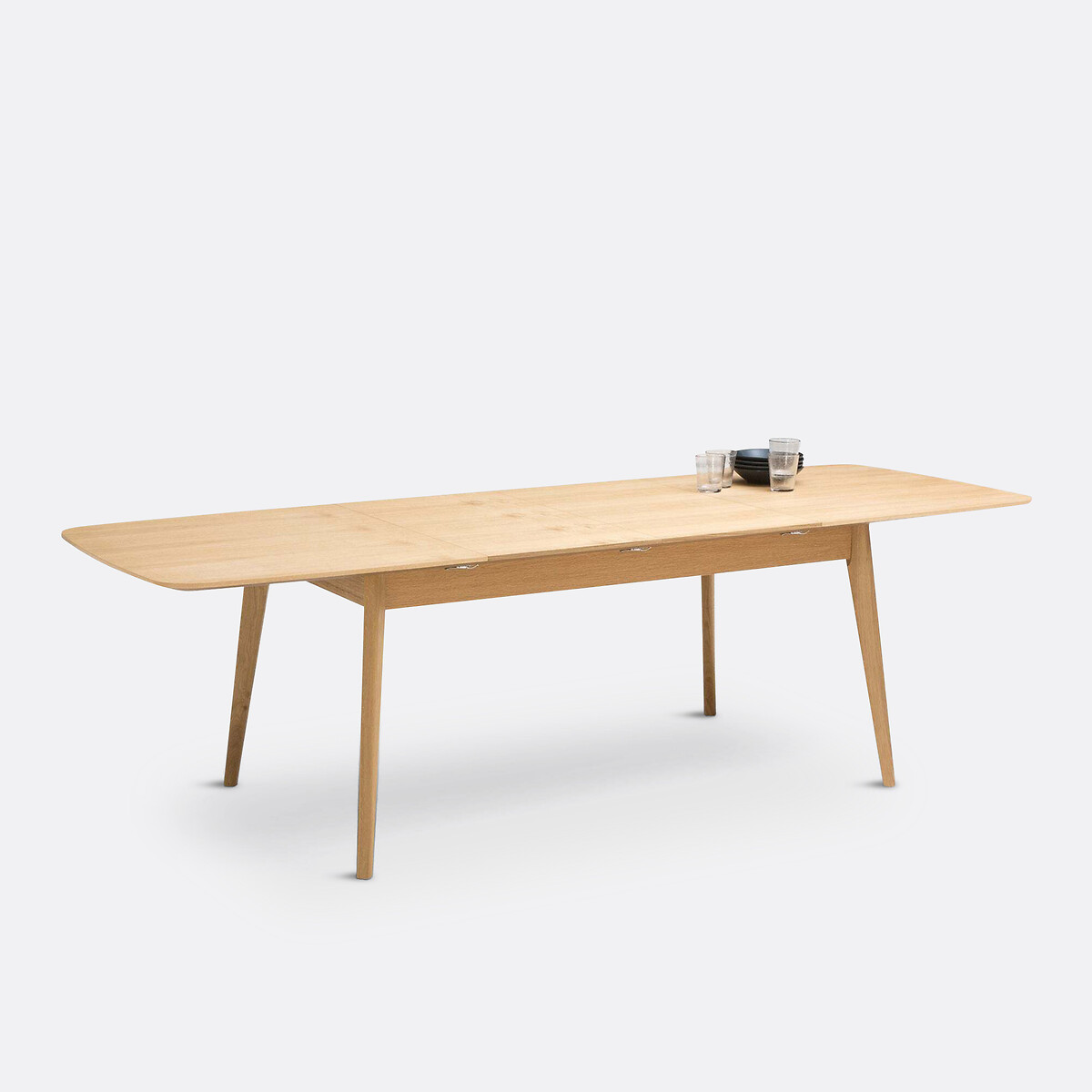 • Столешница, планка вокруг ножек и вставные доски из МДФ, покрытого дубовым шпоном, с покрытием бесцветным полиуретановым лаком