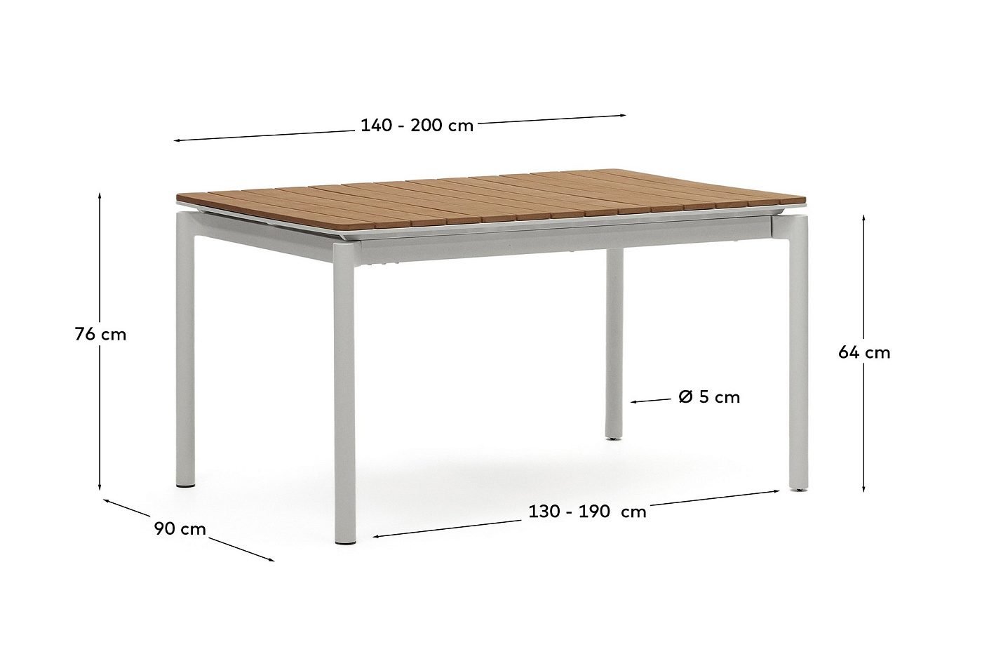 Уличный раздвижной стол Canyelles из полистирола и алюминия светло-серого цвета, 140 (200) x 90