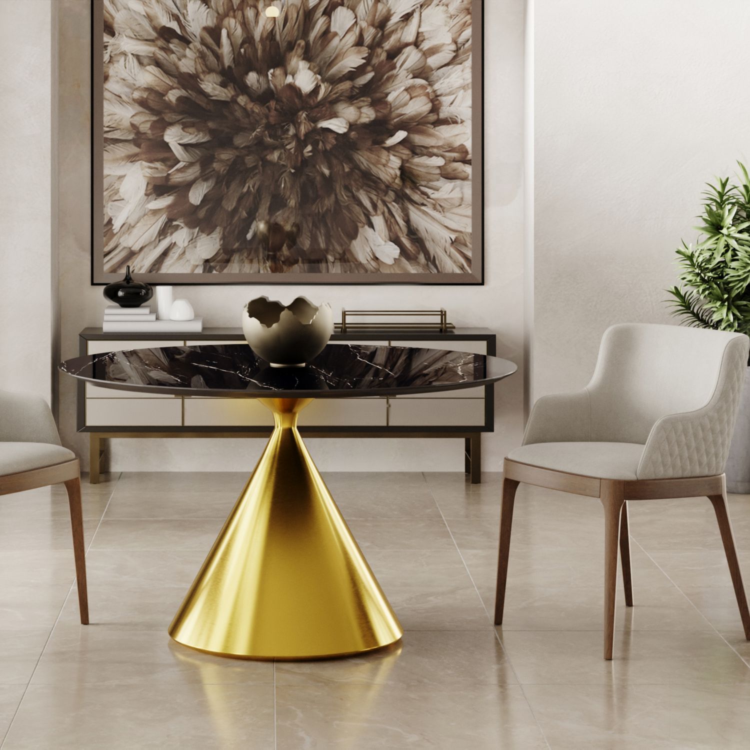 Стол круглый AXIS 120, керамика глянцевая, черная / опора золото