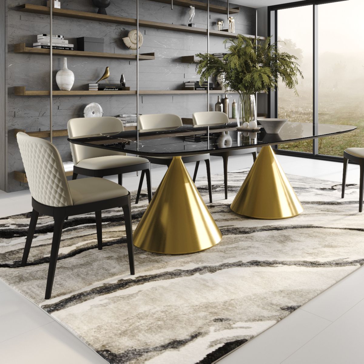 Стол овальный AXIS 200, керамика глянцевая, черная / опора золото