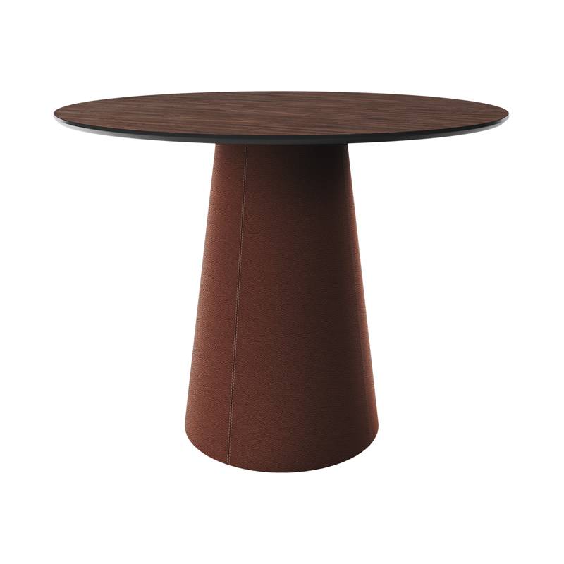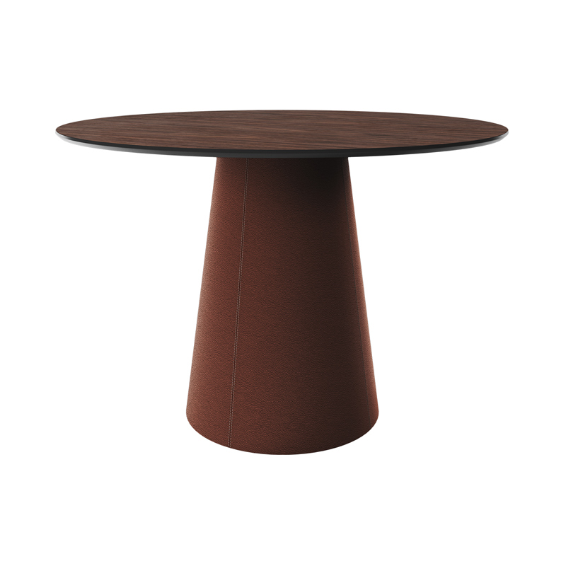 Стол обеденный Lagom D 110 см (орех / кирпичный, кожа)