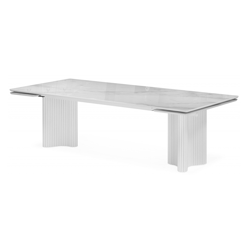 Стеклянный стол Мален 240x110 белый мрамор / белый