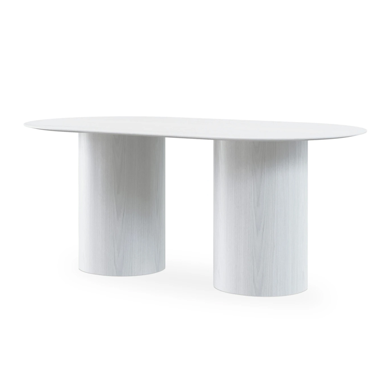Стол обеденный овальный Mono состоит из овальный столешницы и двух цилиндрических оснований.