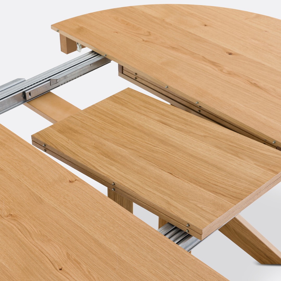 • Столешница, удлинения и обрамление из МДФ шпон дуба, ПУ-лакировка