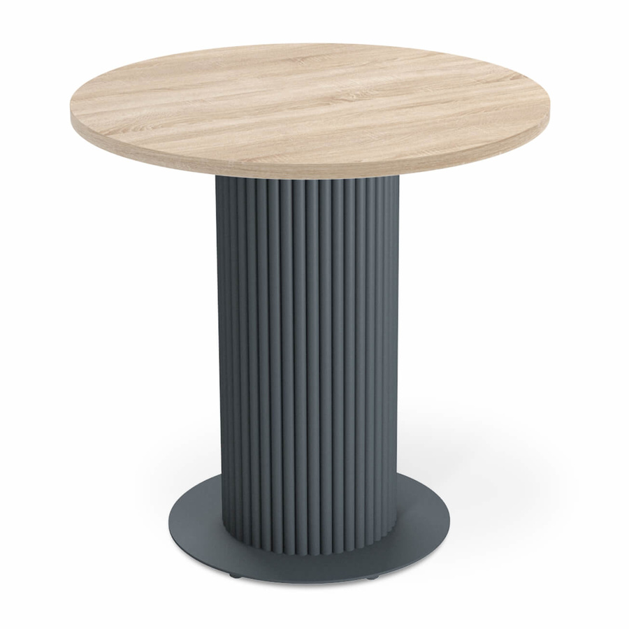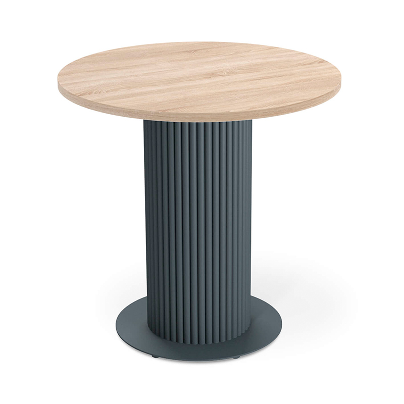 Столешница из МДФ смотрится аккуратно и привлекательно, поскольку имеет плавный закругленный переход от лицевой поверхности к боковым кромкам. имеет рельефные и структурные формы, которые визуально неотличимы от натурального дерева. Основание стола, в свою очередь, не только прекрасно исполняет свою непосредственную функцию, но и служит достойным элементом дизайна интерьера помещения. Внешний облик без единой лишней детали делает готовый стол презентабельным предметом мебели.