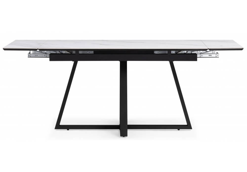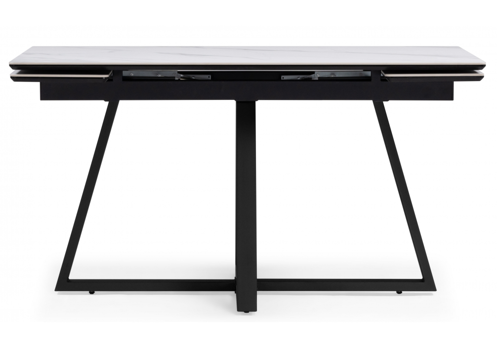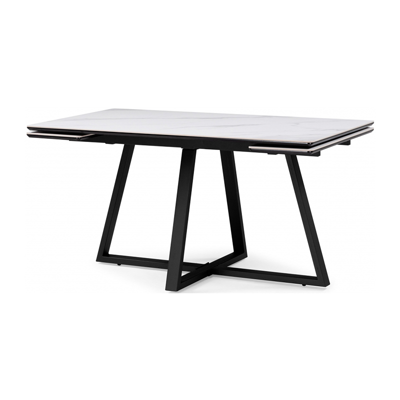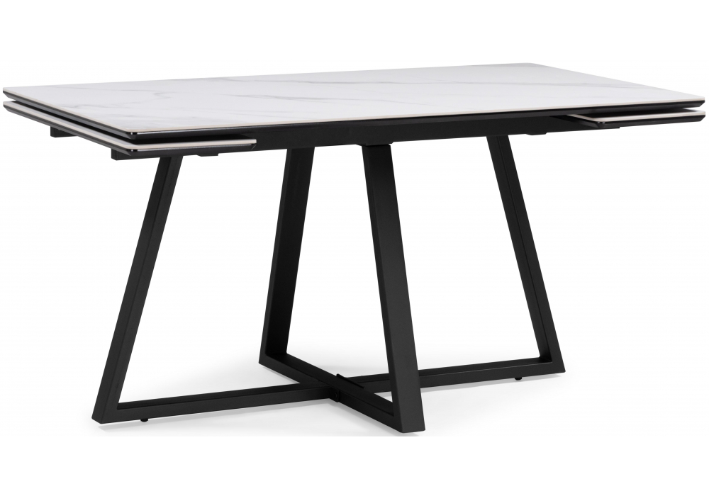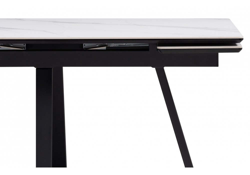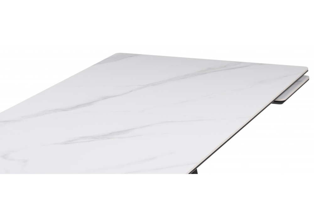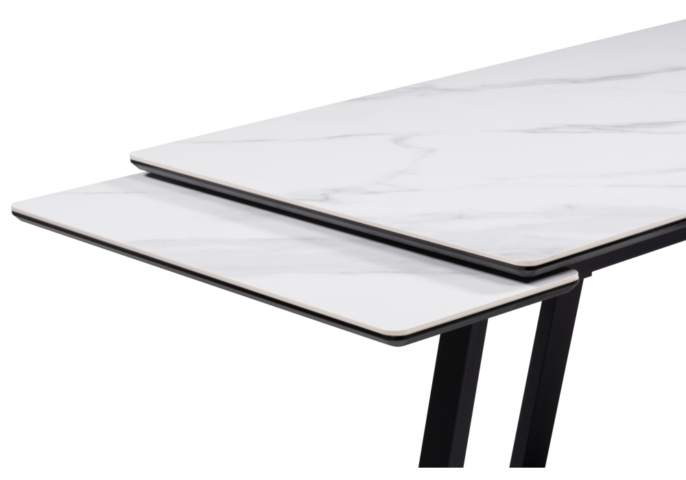 Керамический стол Памелла 120 (180) х 80 белый мрамор / пленка черная шагрень / ноги черные