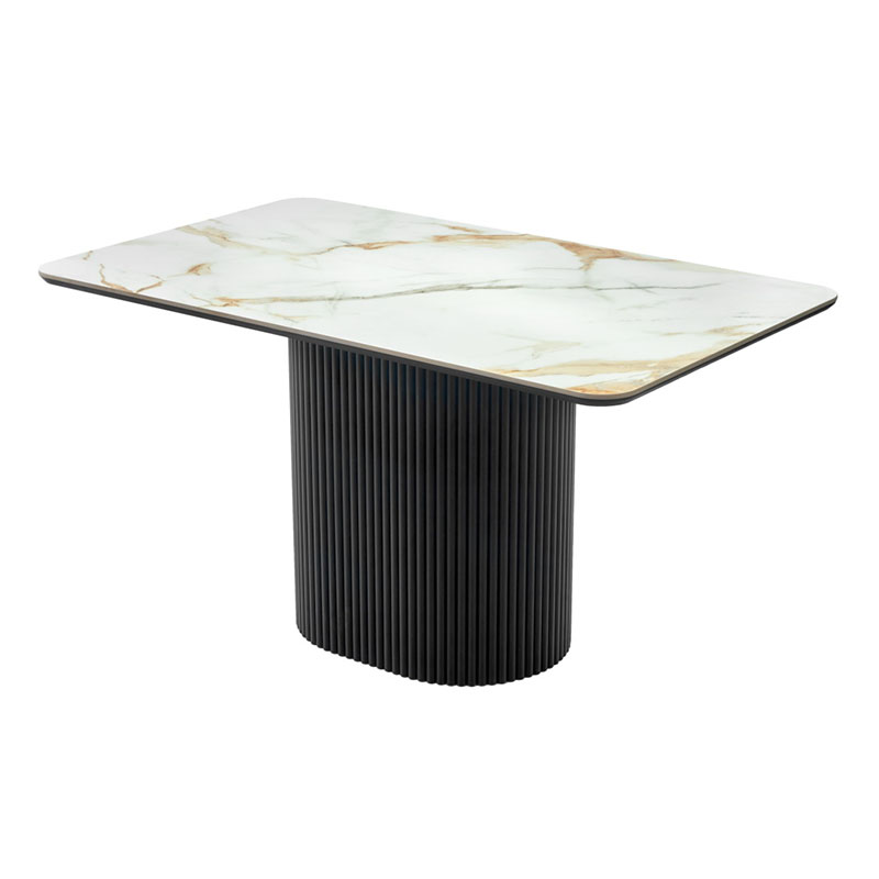 Высококачественная керамическая столешница: стол Festa обладает глянцевой премиальной столешницей из керамогранита Calacatte gold, имитирующей белый мрамор. Поверхность размером 1400х850 мм со скошенной кромкой не царапается, не впитывает жидкость и легко моется, что обеспечивает долгий срок службы и минимальный уход.