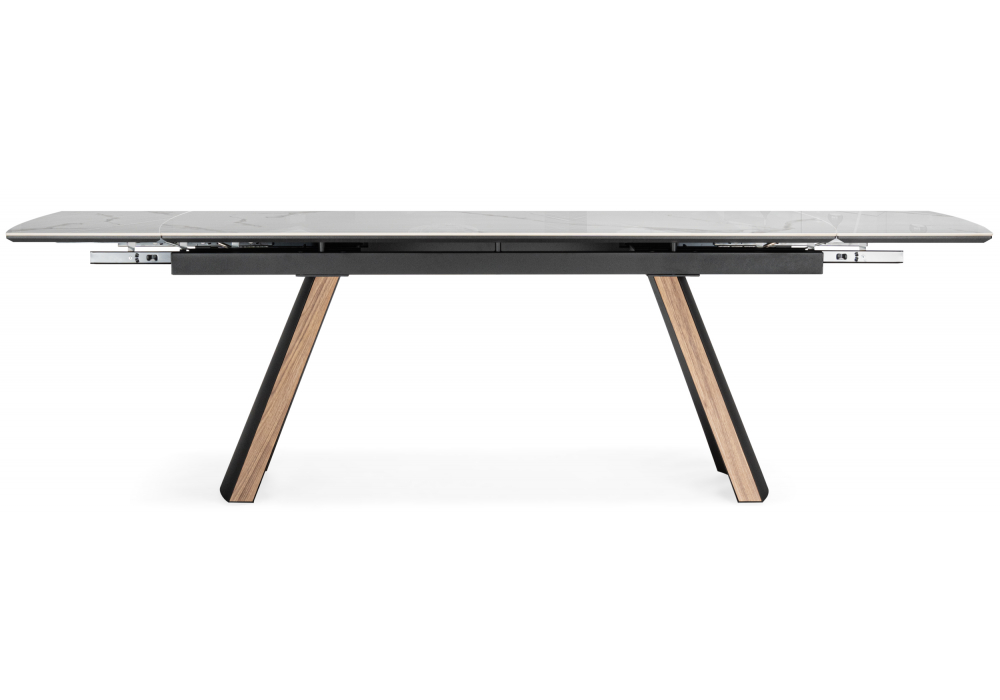 Керамический стол Симмонс 180(260)x90 statuario titan gloss / черный / орех дуб монтана