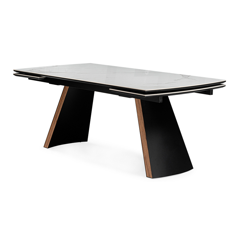 Этот впечатляющий раздвижной стол сочетает в себе роскошную глянцевую керамику и комбинированное основание премиум-класса. Идеальное решение для просторной столовой, где важны безупречная эстетика, долговечность и возможность принимать большие компании.