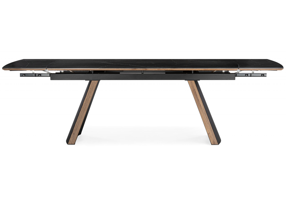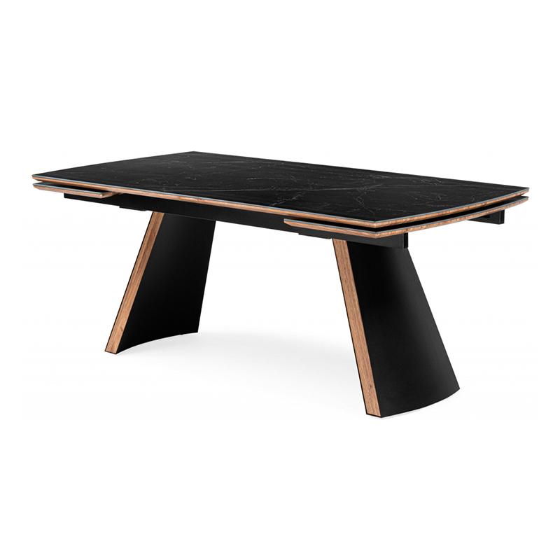 Этот впечатляющий раздвижной стол сочетает в себе роскошную глянцевую керамику и комбинированное основание премиум-класса. Идеальное решение для просторной столовой, где важны безупречная эстетика, долговечность и возможность принимать большие компании.