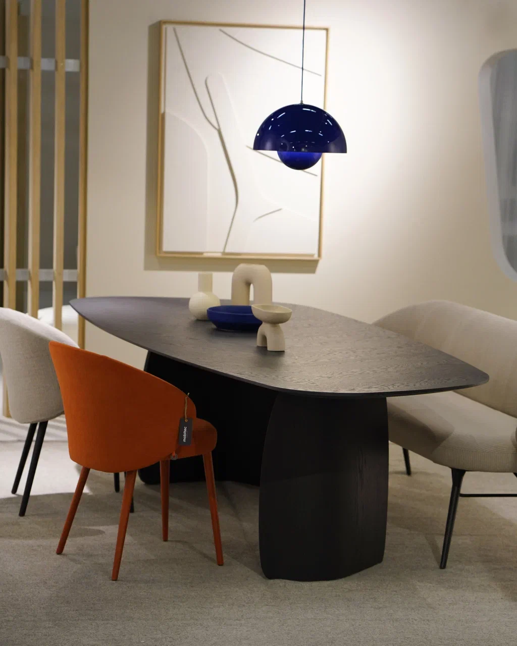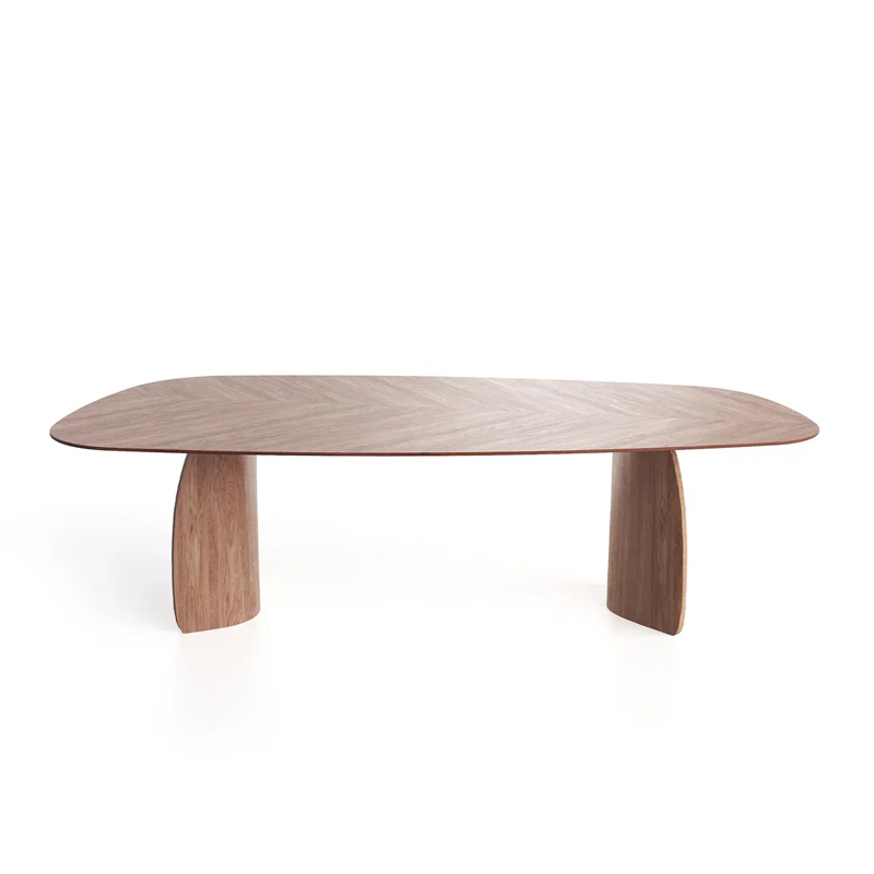 Запросить индивидуальное предложениеДизайнерский стол на изогнутых ножках-лепестках из натурального промасленного дуба. Позицию ножек - выпуклой частью к центру стола или наружу - можно поменять в момент монтажа. Ассиметричная столешница органической галечной формы из натурального шпона дуба с художественной раскладкой рисунка chevron, "елочка". 18 природных и акцентных оттенков. Столешница 30 мм по толщине отфрезерована на фацет и скруглена.