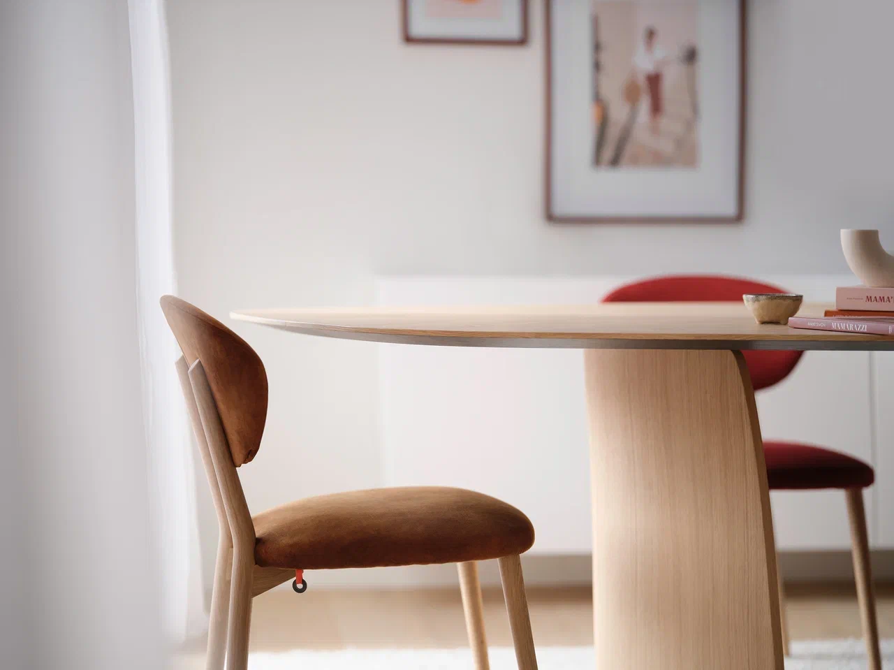 Запросить индивидуальное предложениеОвальный стол на оригинальных выгнутых ножках-лепестках из натурального промасленного дуба. Расположение ножек - выпуклой частью в глубь стола или наружу - определяется в момент монтажа и может быть изменено позже. Столешница удлиненной формы из натурального дуба с художественной раскладкой рисунка chevron, "елочка". Столешница толщиной 30 мм отфрезерована и имеет скругленный край.