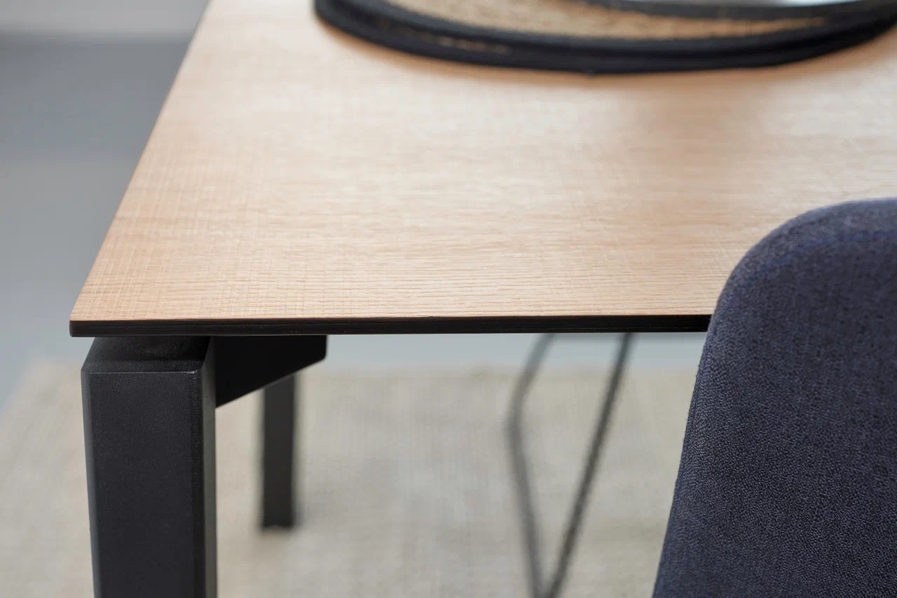 Запросить индивидуальное предложениеЭлегантный обеденный стол с эффектом парящей столешницы, анатуральный массив дикого дуба с эффектной текстурой - 18 оттенков дерева.. Столешница толщиной 24 мм с филигранно отфрезерованным краем, видимая часть столешницы - 8 мм. Металлическое основание - 22 цвета металла.
