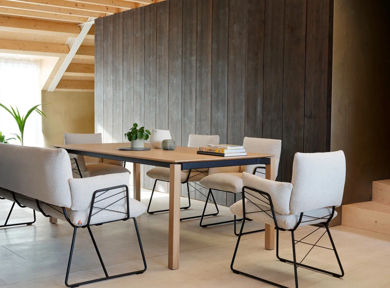 Запросить индивидуальное предложениеДизайнерский обеденный стол с эффектом парящей столешницы: ножки и столешница из массива дуба. 18 оттенков дерева: выбеленный, венге, шафран, табачный и др. Столешница из промасленного массива толщиной 24 мм с глубокой фрезеровкой края на фацет. Видимая часть столешницы - 8 мм.