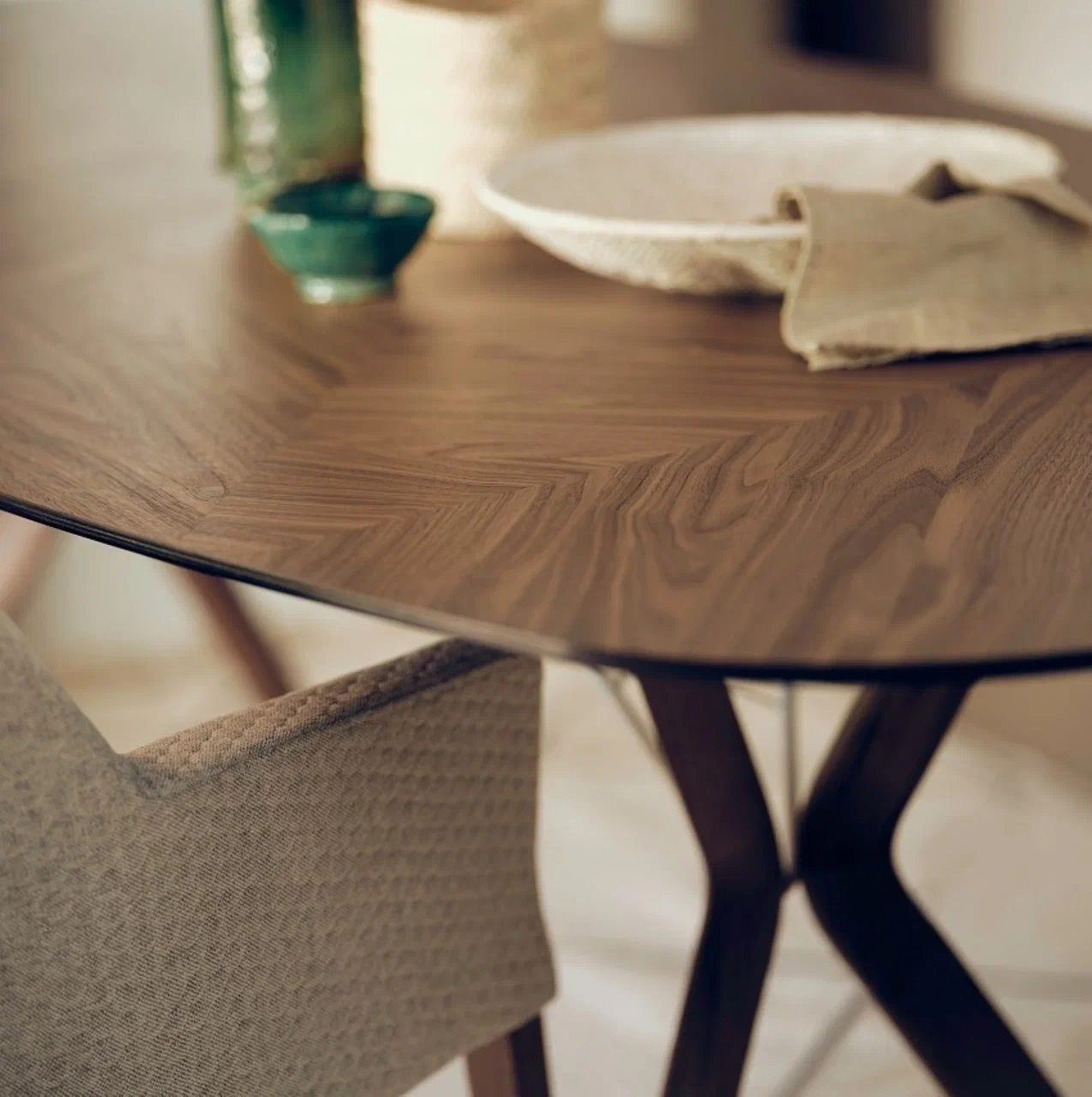 Запросить индивидуальное предложениеОвальный обеденный стол на фигурном основании из промасленного массива дуба с ажурной металлической деталью. Столешница с фацетным краем: натуральный шпон дуба с художественной раскладкой рисунка Mosaic - 18 цветов. Металлическая деталь - 22 цвета на выбор.