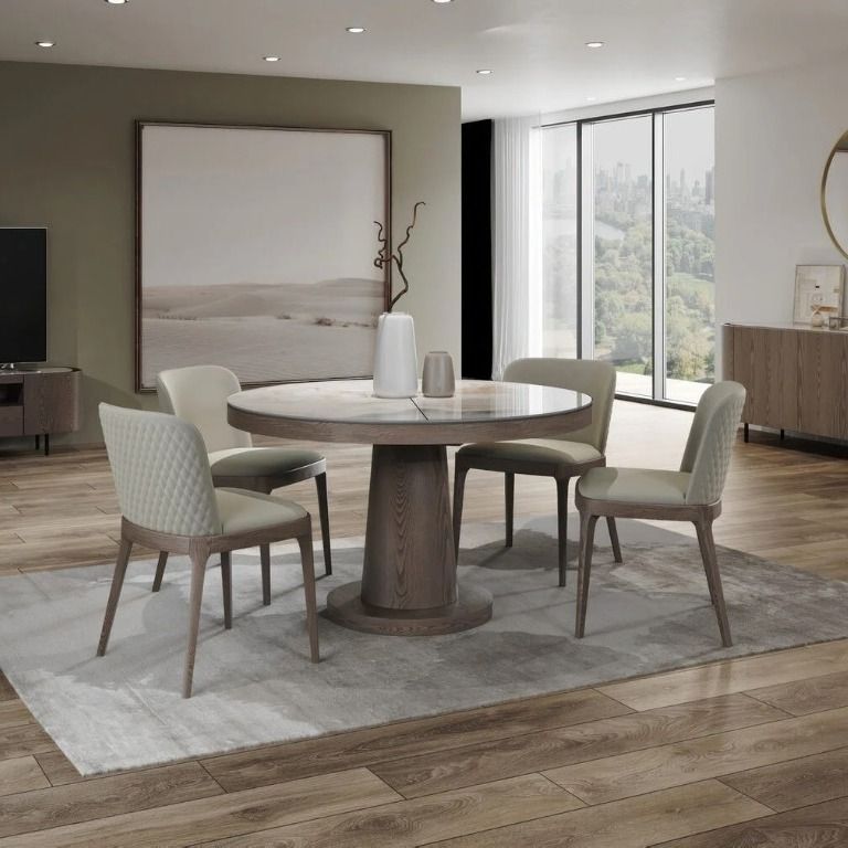 Стол круглый обеденный Bilbo (100+40), керамика глянцевая белая