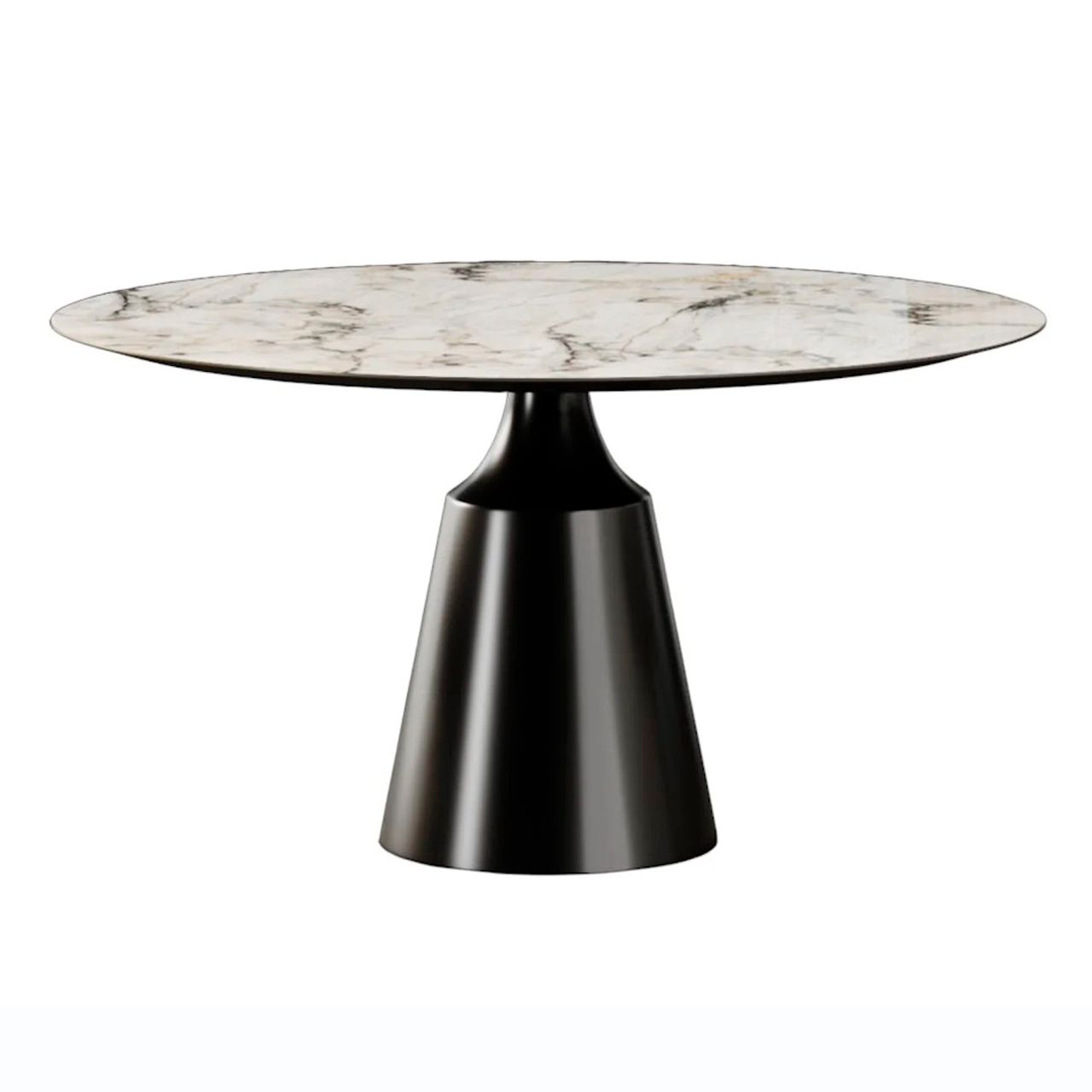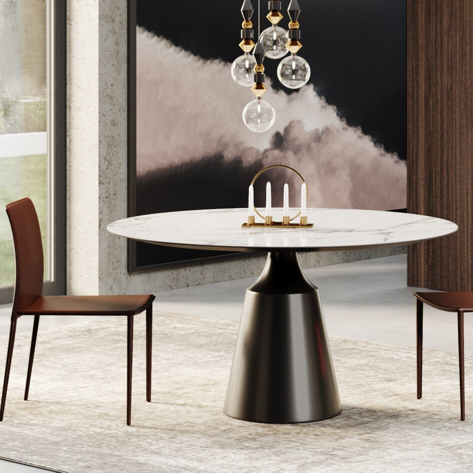 Стол круглый Lucas 120, керамика глянцевая, белая / опора черная