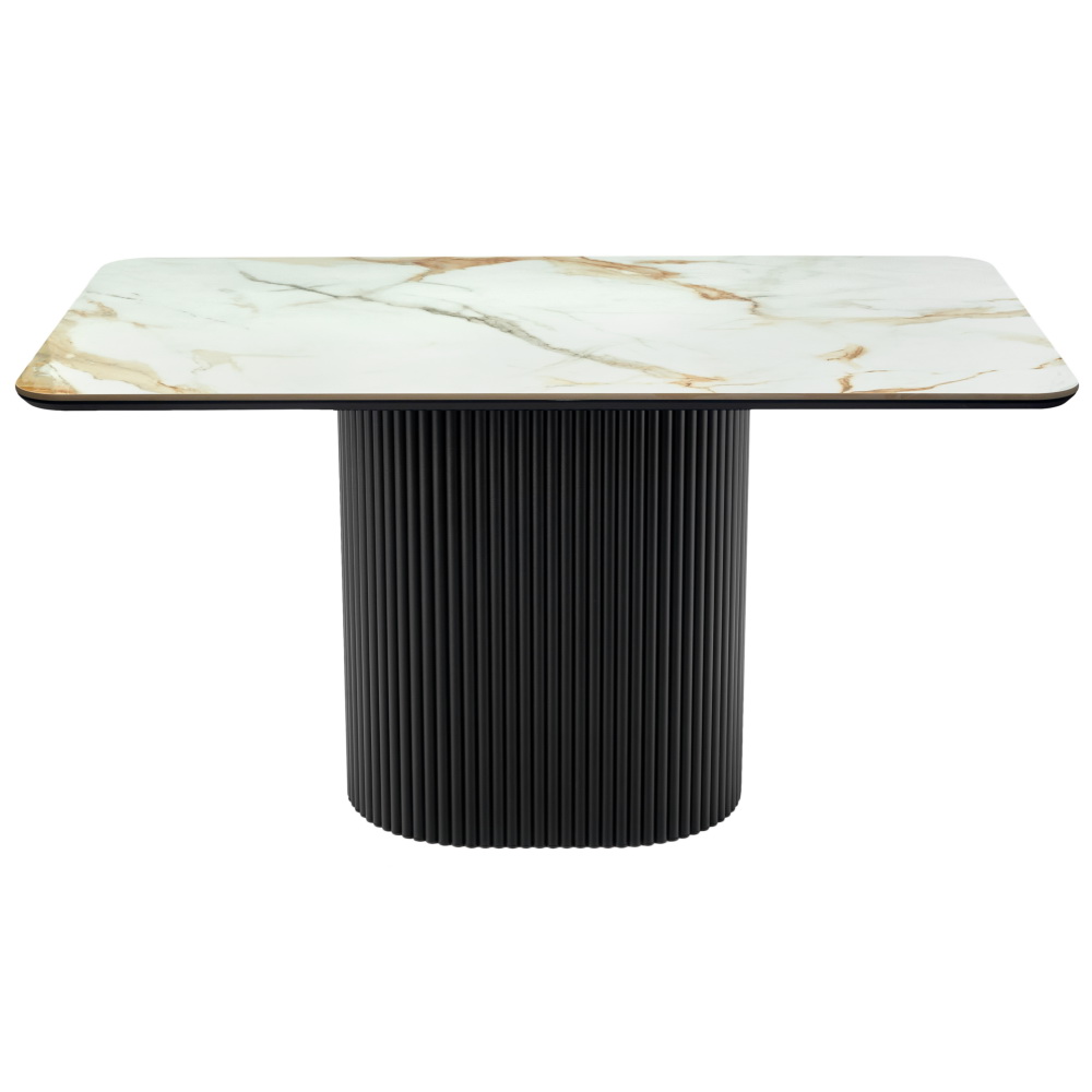 Высококачественная керамическая столешница: стол Festa обладает матовой премиальной столешницей из керамогранита White Stone, имитирующей белый мрамор. Поверхность размером 1600х900 мм со скошенной кромкой не царапается, не впитывает жидкость и легко моется, что обеспечивает долгий срок службы и минимальный уход.