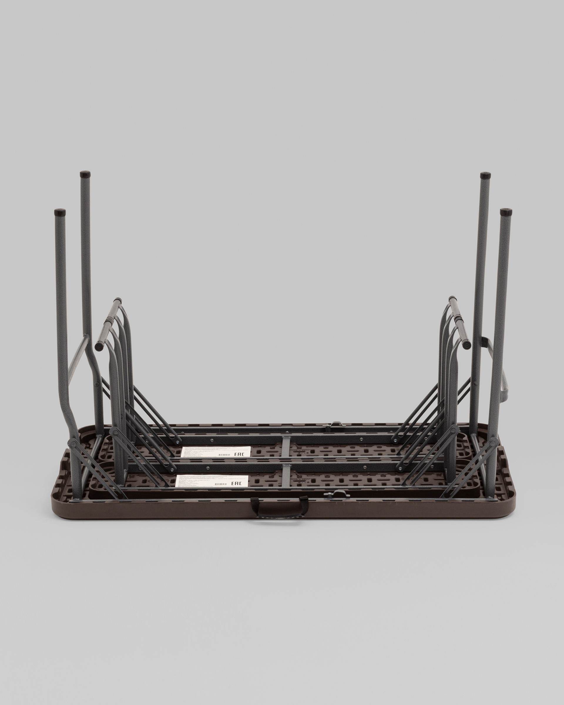 Для каркаса используется стальная труба особой прочности, а столешница выполнена из 100% не переработанного полиэтилена HDPE (полиэтилен высокой плотности). Считается одним из более безопасных видов пластика. HDPE пластик выдерживает высокие нагрузки, не трескается при ударной нагрузке, эластичен в диапазоне температур от –70 до +100 °С.