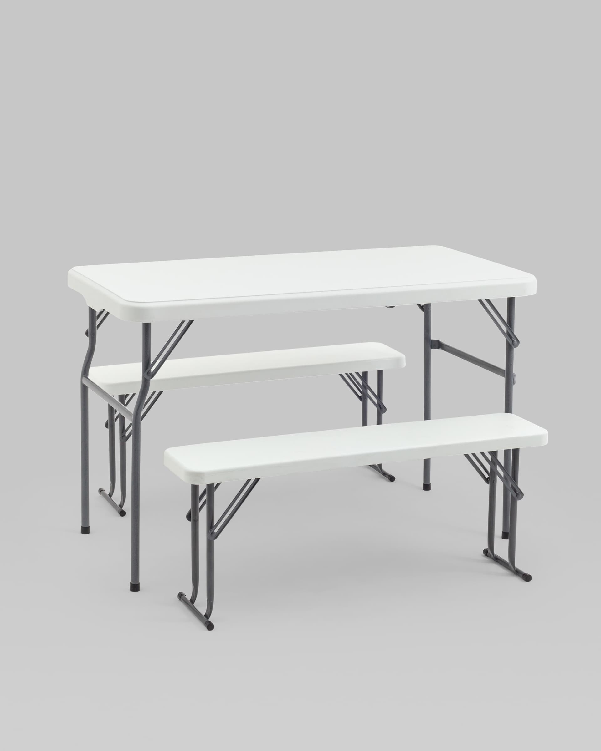 Запросить индивидуальное предложениеКомплект из пластикового стола и двух скамеек входит в перечень мебели, особенно востребованной для кейтеринга. Данный набор мебели позволит с комфортом рассадить участников и гостей различных выездных мероприятий, а при организации банкетов, свадеб и корпоративных праздников поможет создать комфортную обстановку для фуршета. Модель отличается сдержанным и универсальным видом, благодаря чему впишется в концепцию любого события.