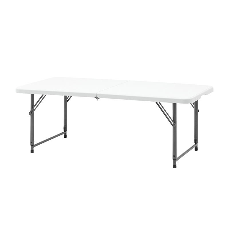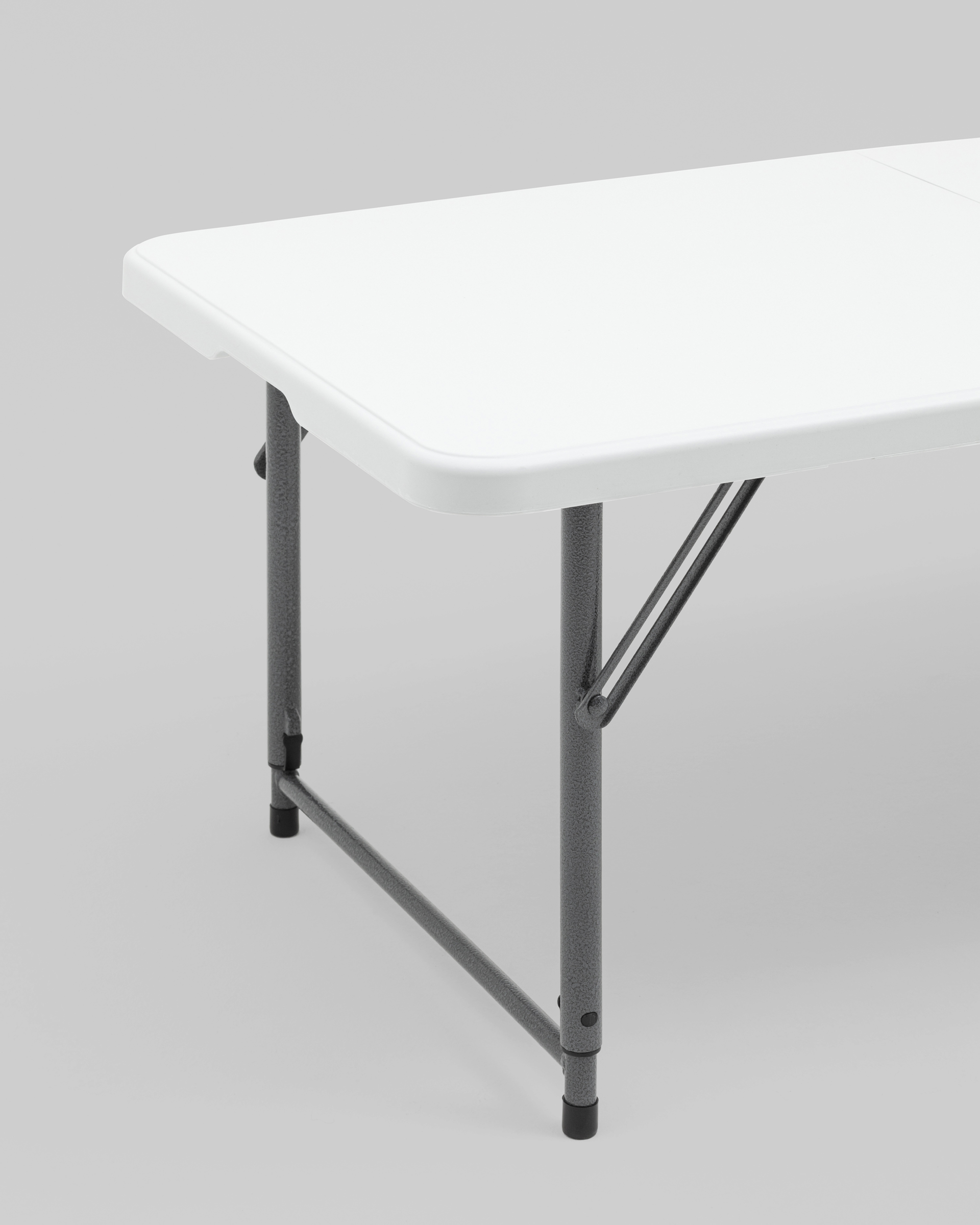 Запросить индивидуальное предложениеВ коллекции удобной и функциональной мебели представлен складной пластиковый стол-книжка длиной столешницы 122 см и регулируемой высотой от 45 до 74 см. В сложенном виде модель занимает минимум места, что делает его идеальным для хранения или транспортировки в багажнике автомобиля, при этом вес модели – всего 8,2 кг. Благодаря этому стол можно использовать как для выездных деловых и праздничных мероприятий, так и в личных целях на собственной даче или в загородном доме.