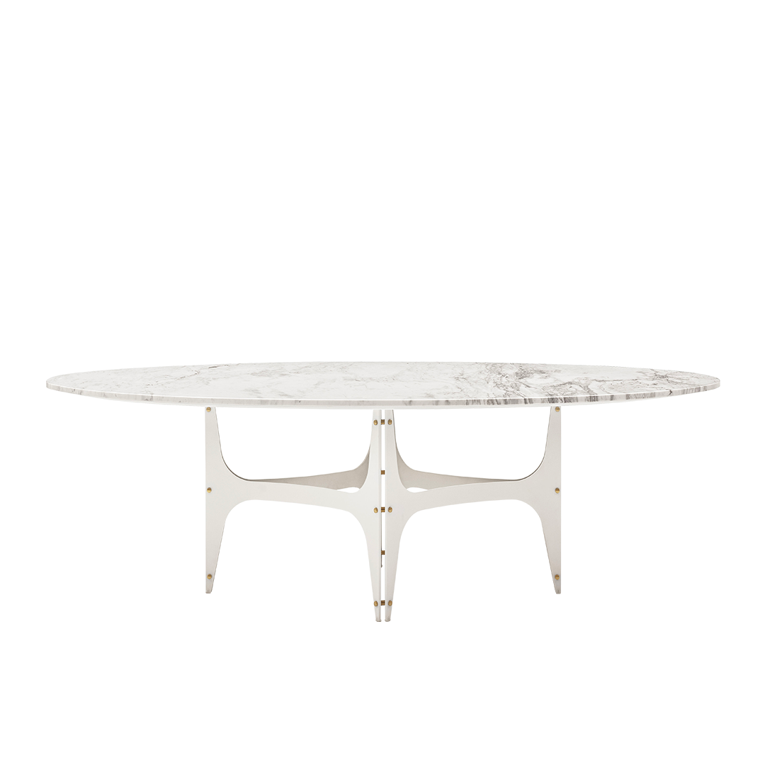 Запросить индивидуальное предложениеСтол нераскладной, структурa и декоративные детали из лакированной стали, столешница из шпона, шпона с краями из массива, массива, глянцевого стекла или стекла, устойчивого к царапинам или СуперМрамора.