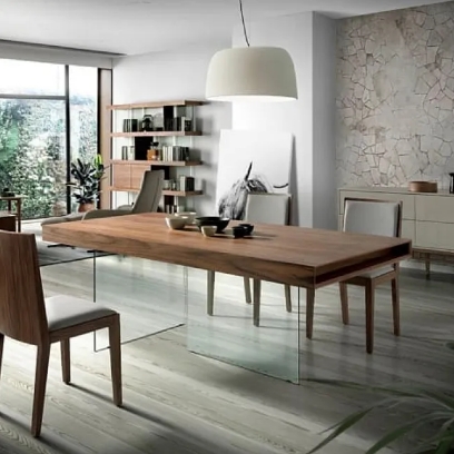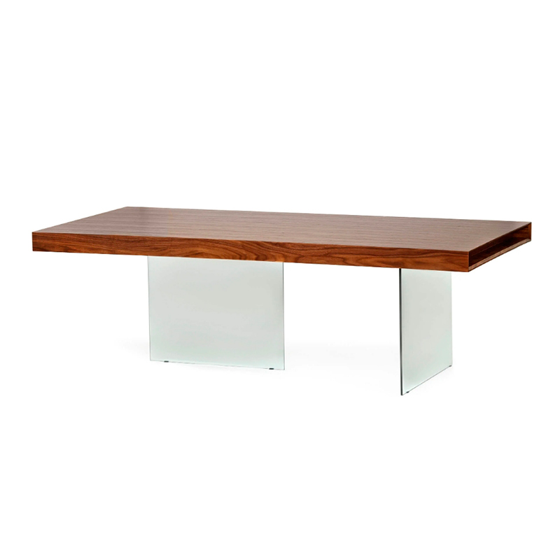 Прозрачные ножки создают впечатление невесомости, а богатая текстура орехового шпона добавляет глубину и характер.