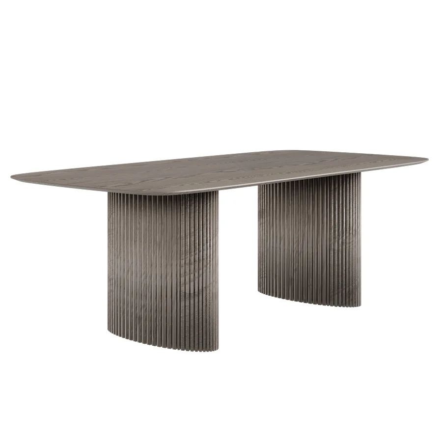 Стол оснащен прямоугольной столешницей с закругленными углами, выполненной из шпона, что обеспечивает прочность и устойчивость к царапинам и пятнам. Опора стола выполнена из МДФ, покрытого натуральным шпоном, что добавляет изделию элегантности и гармонично вписывается в современные и классические интерьеры.