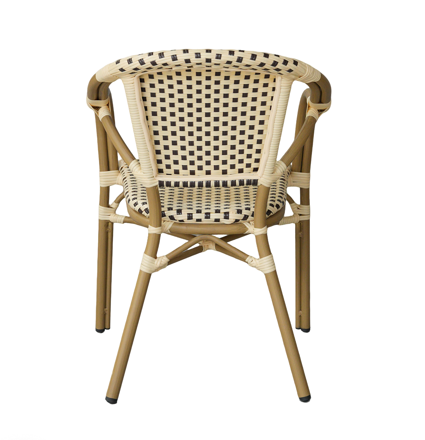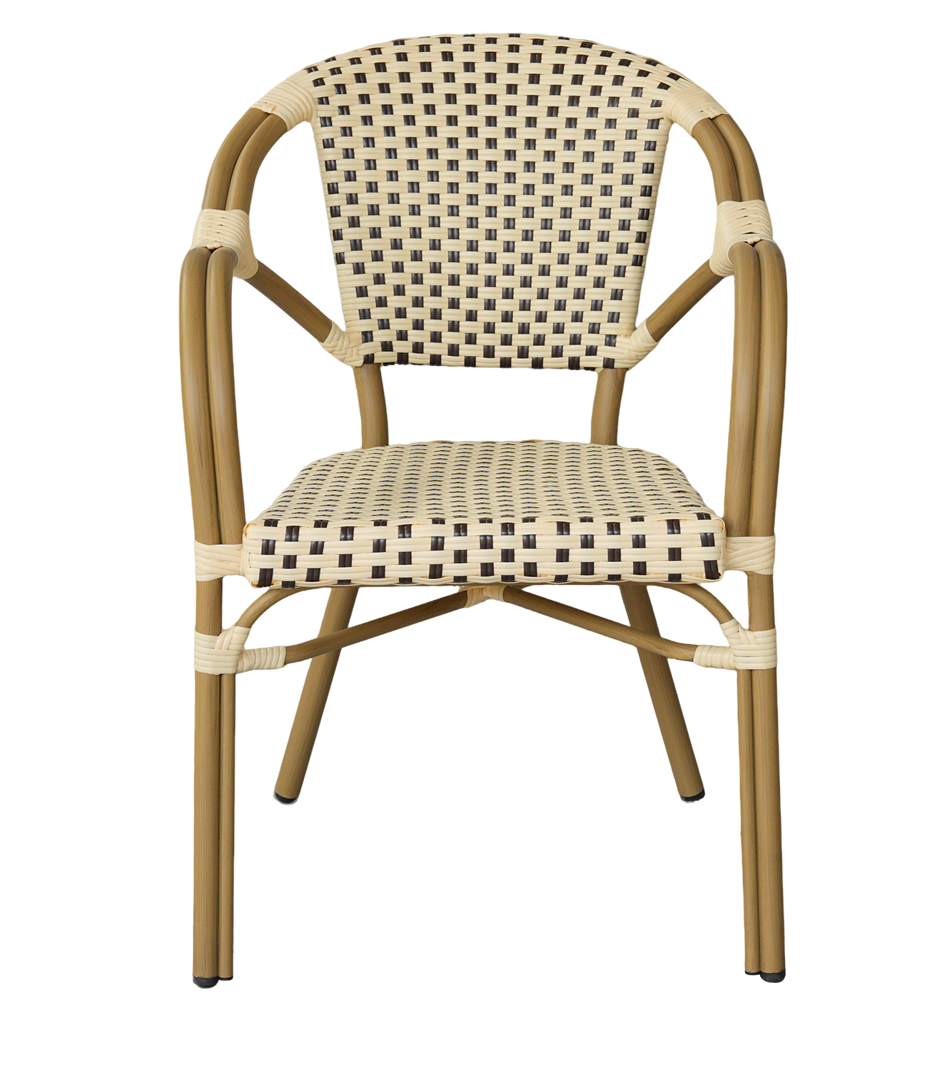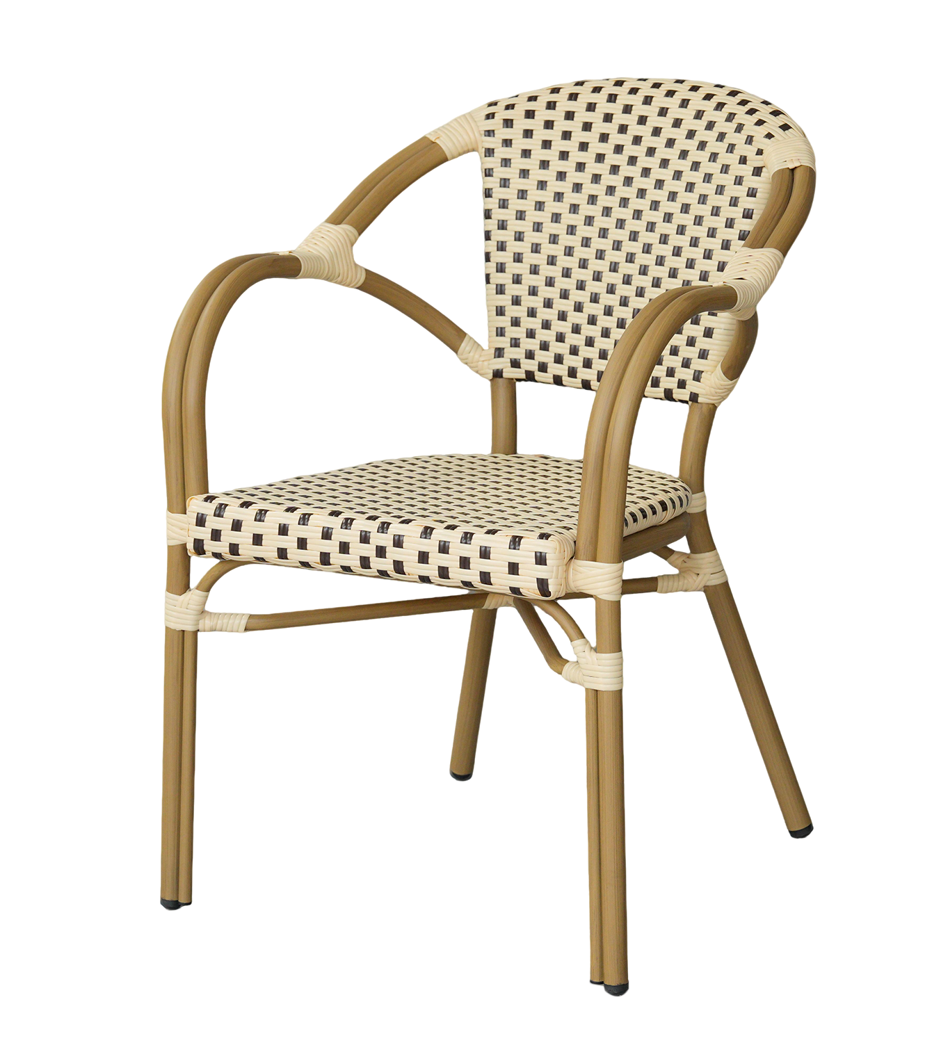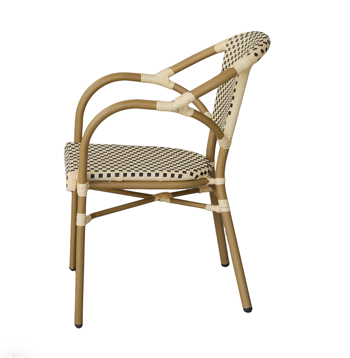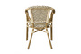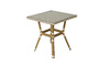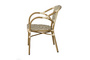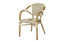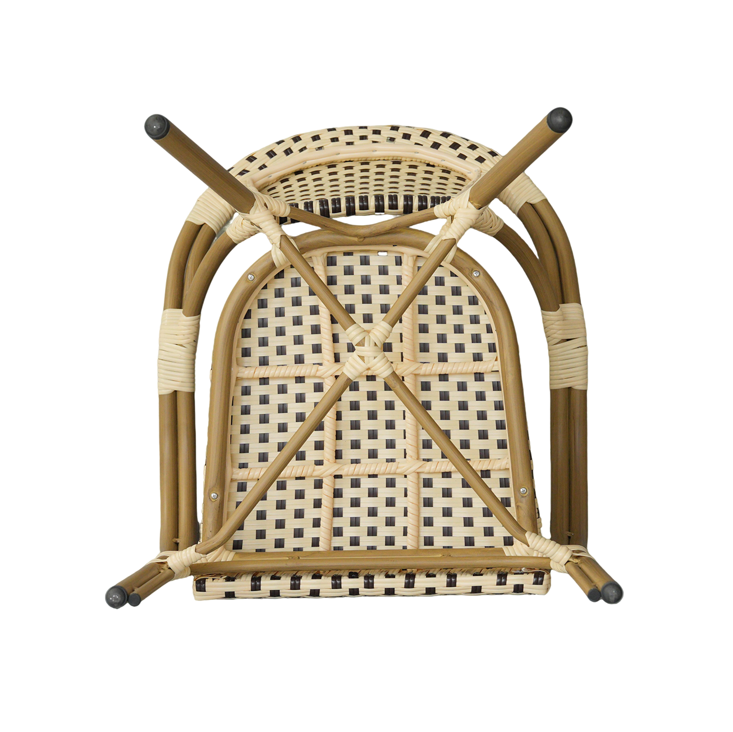 В набор входят квадратный стол и четыре стула, объединённые единым дизайнерским решением: изысканное ручное плетение из плоского искусственного ротанга в бежево‑коричневой гамме эффектно дополняет прочный алюминиевый каркас с износостойким покрытием.