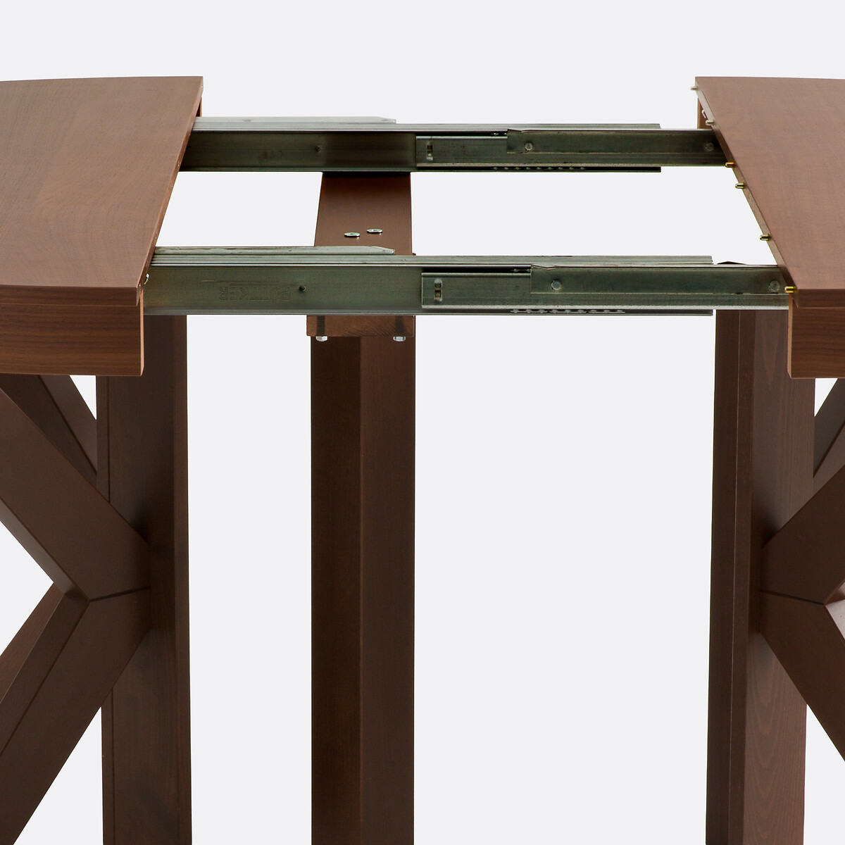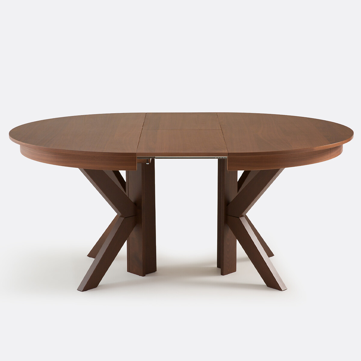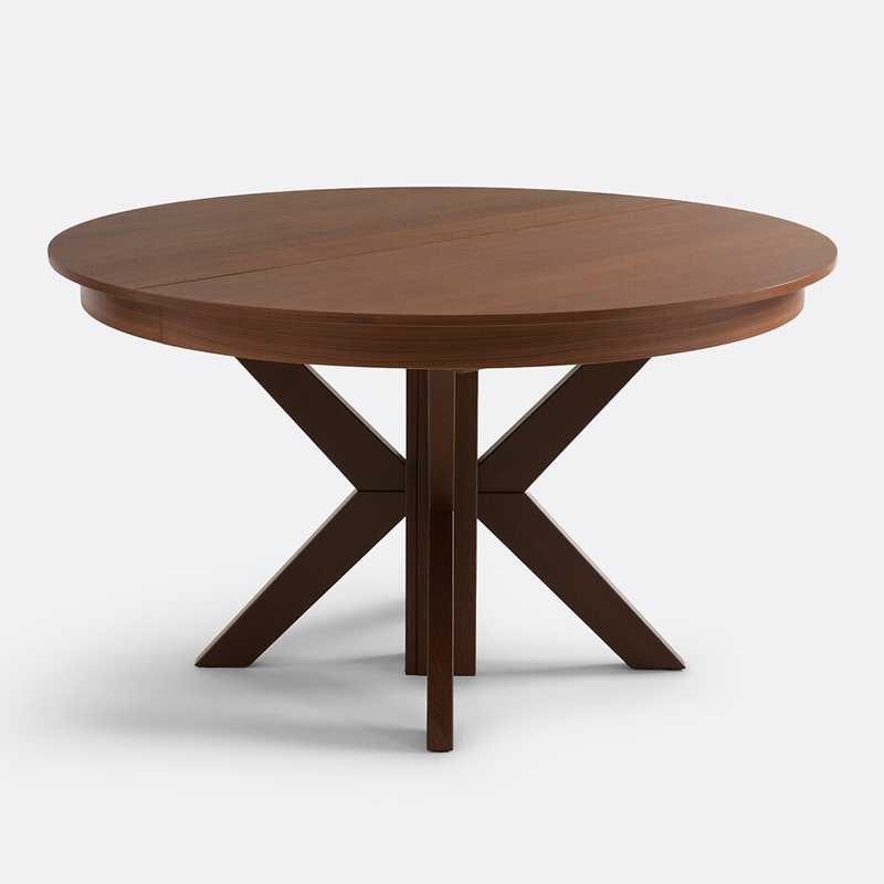 • Столешница, вставки для увеличения и царговый пояс из МДФ с ореховым шпоном, финишное покрытие — полиуретановый лак