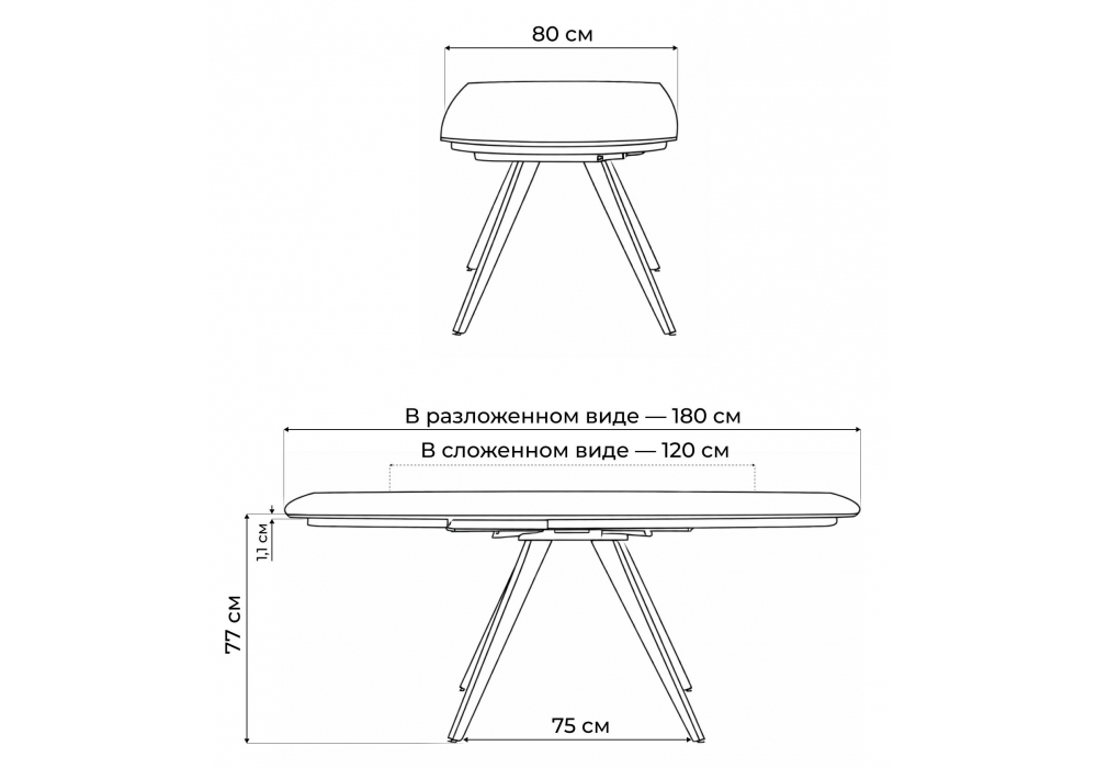 Керамический стол Silvi 120(180)x80 серый / черный