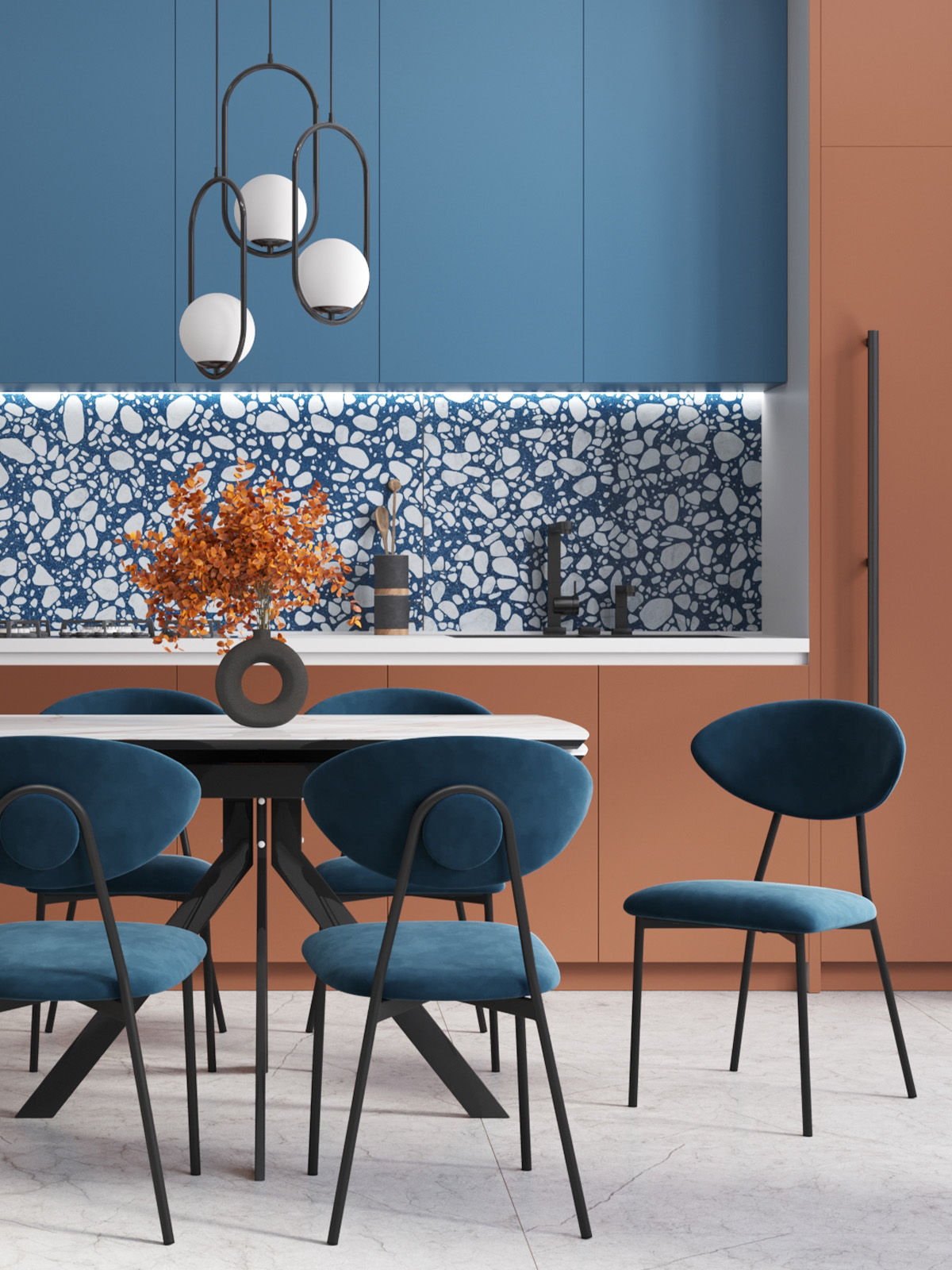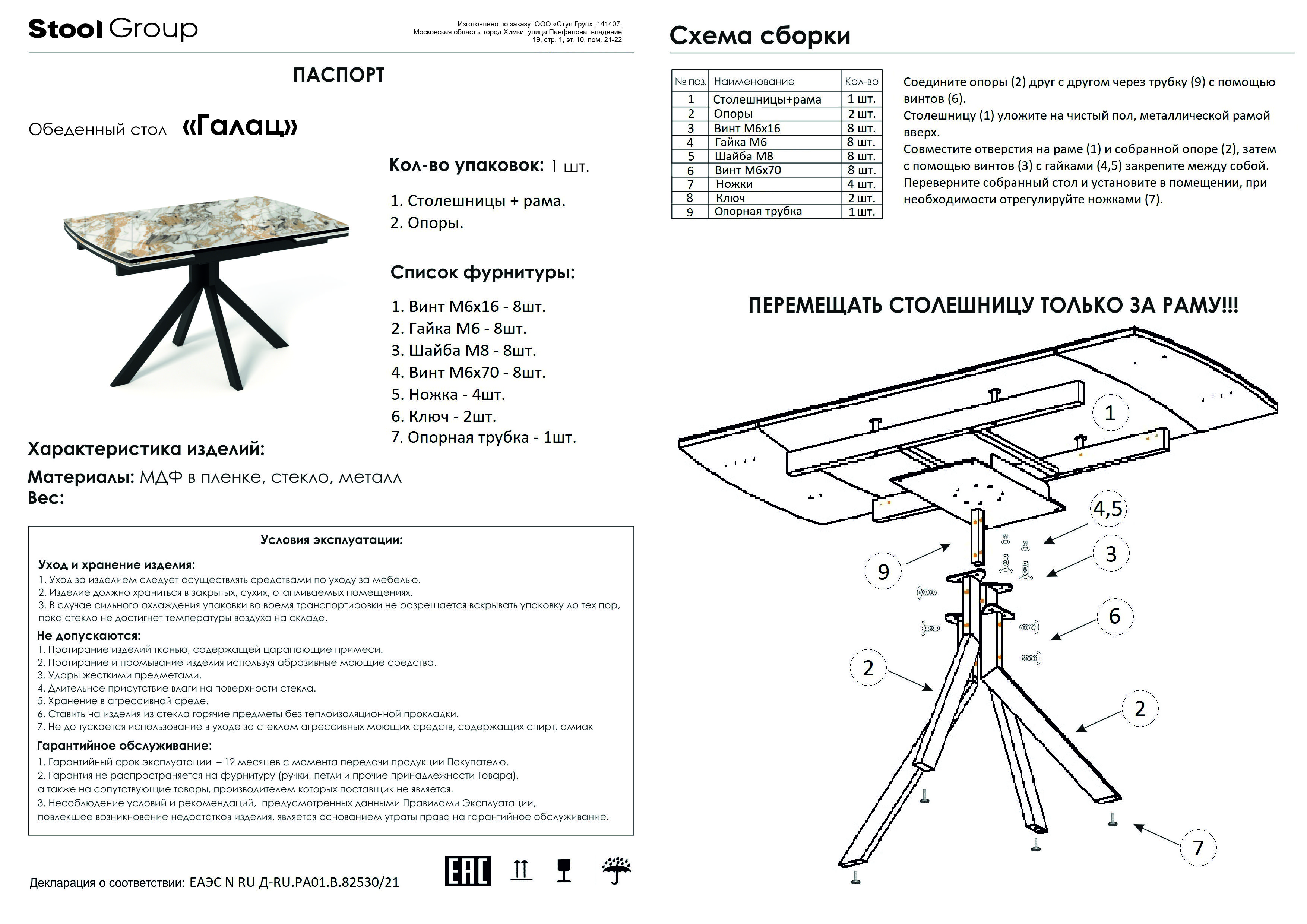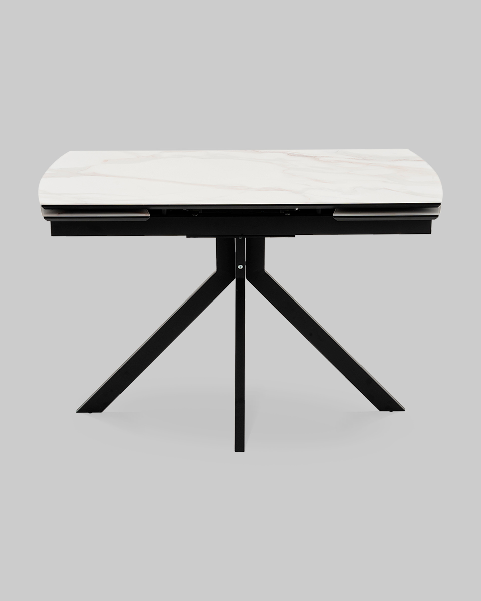 Стол обеденный раскладной Галац привлекает внимание эффектной столешницей из закалённого стекла с мраморным рисунком. Такой дизайн имитирует натуральный камень и придаёт столу дорогой, изысканный вид, делая его ярким акцентом в интерьере.
