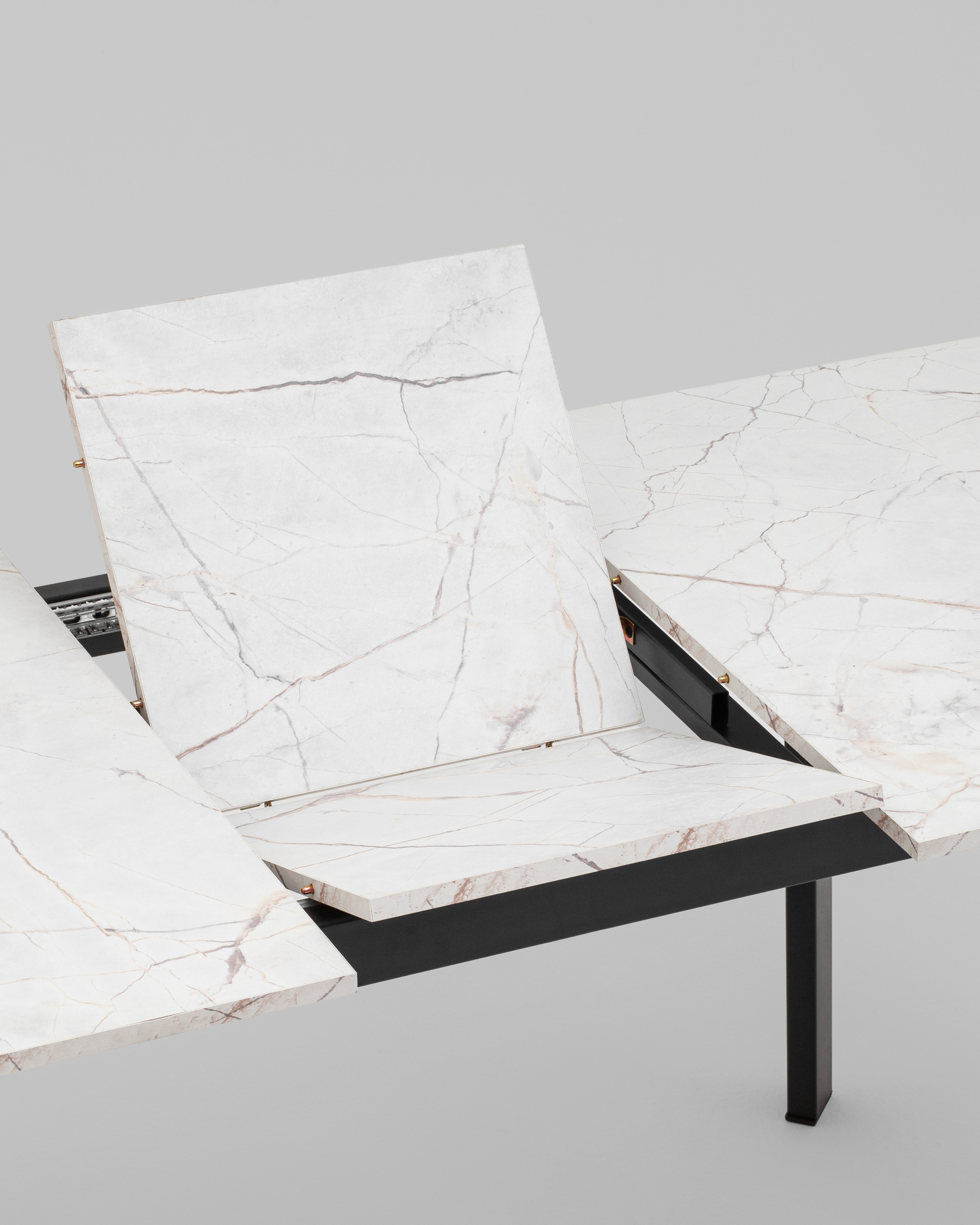Стол оборудован удобным раскладным механизмом «бабочка», который позволяет увеличить рабочую поверхность с 120 до 160 см при ширине 80 см и высоте 76 см. Такое решение даёт возможность с комфортом разместить до 6 персон, делая стол идеальным вариантом как для повседневных ужинов, так и для праздничных застолий.