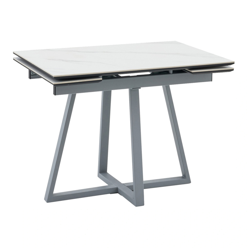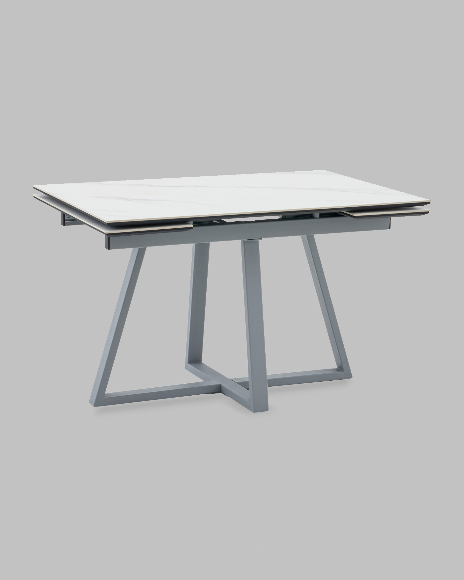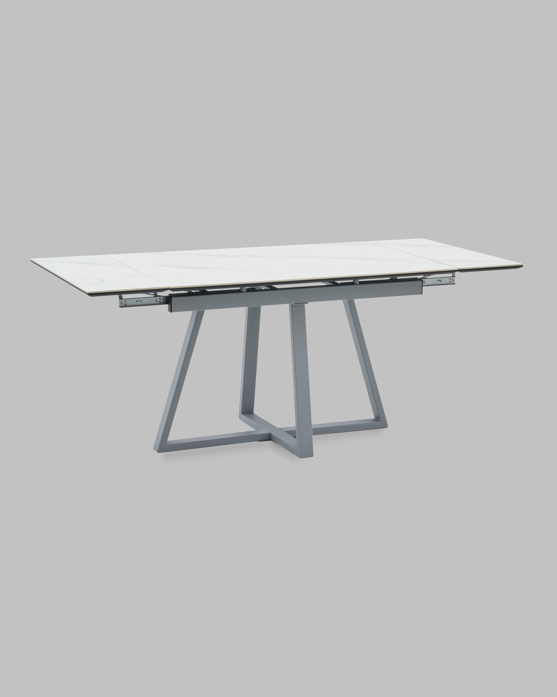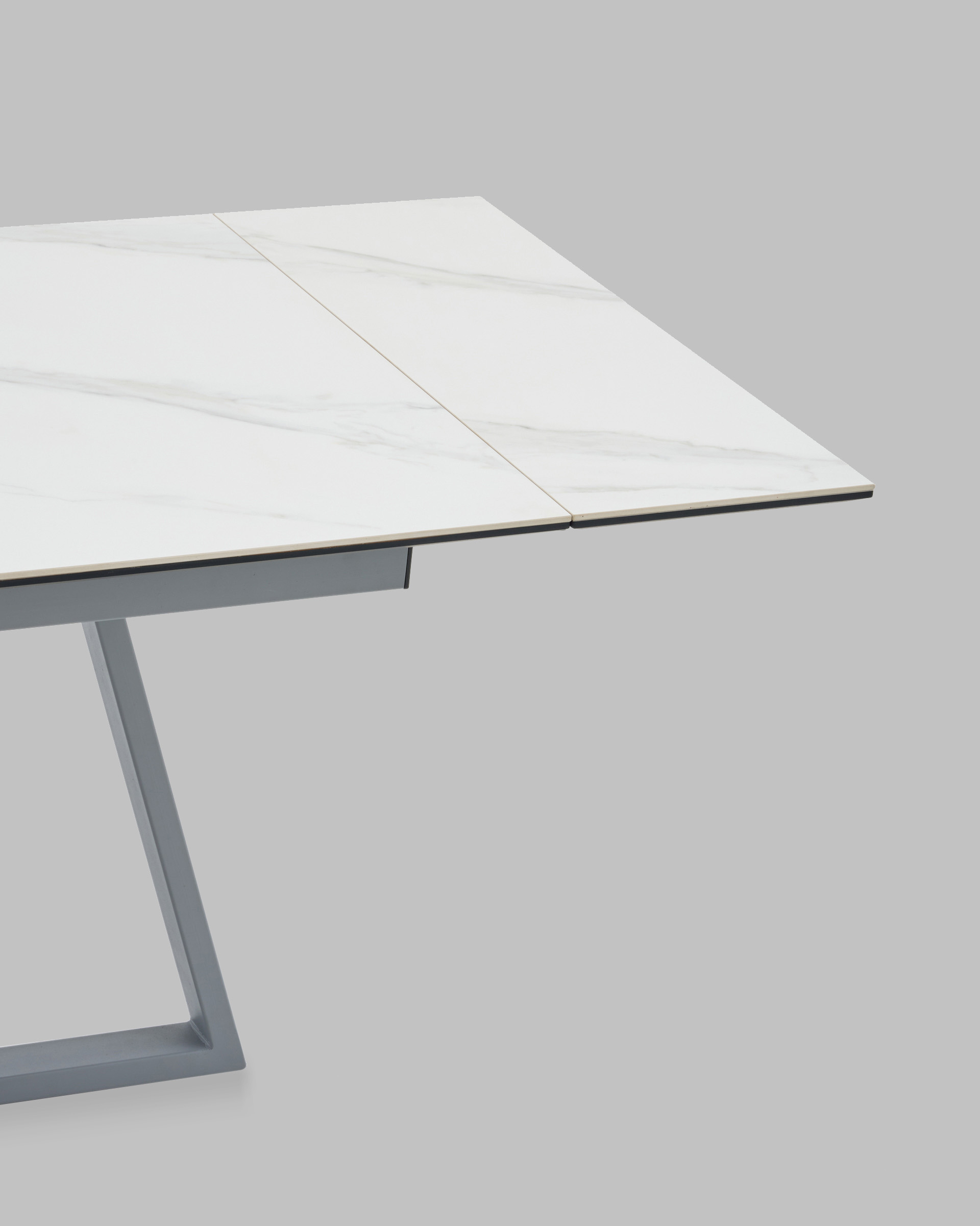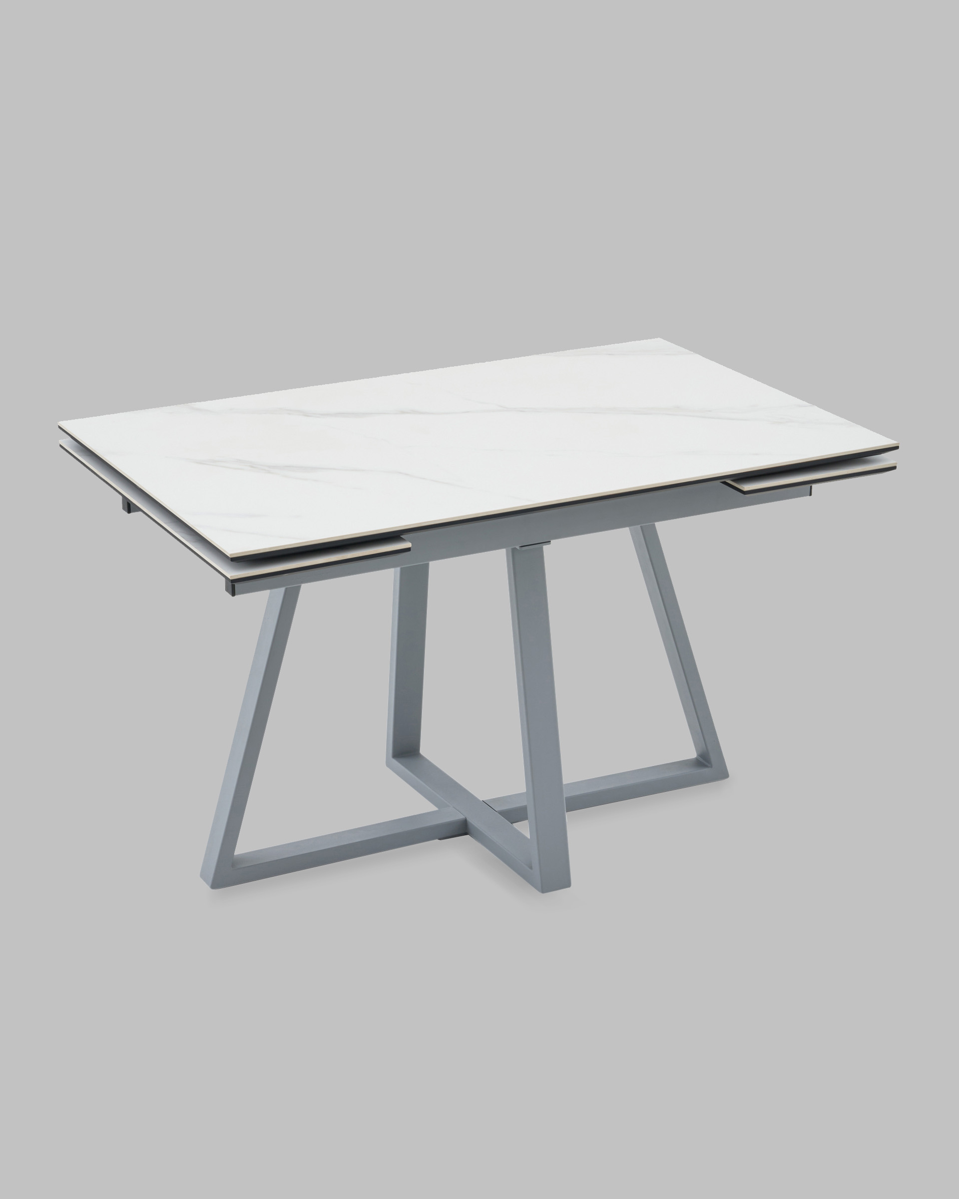 Стол Керас 120-180/80/75 столешница МДФ16/керамика Snow white подстолье металл серый