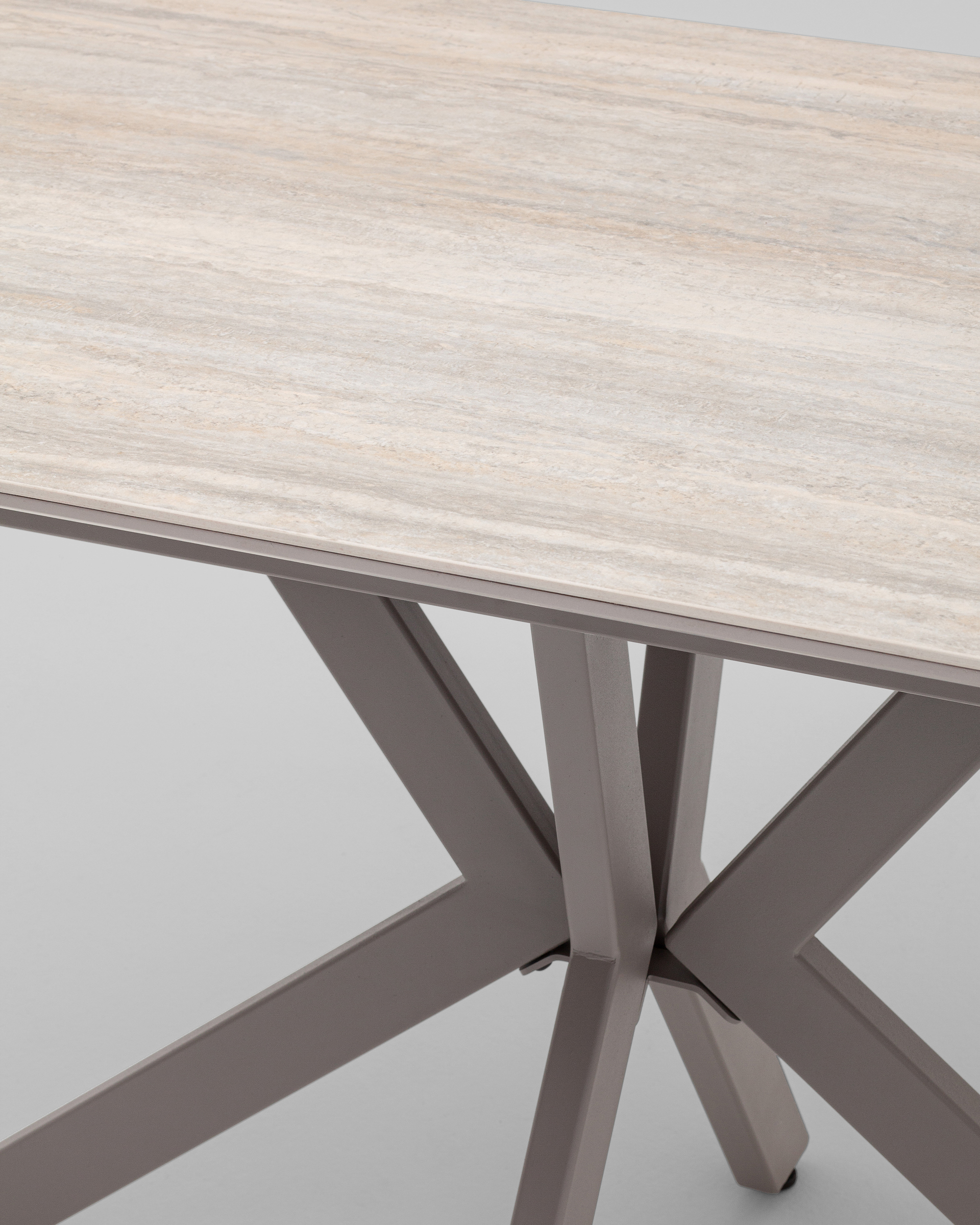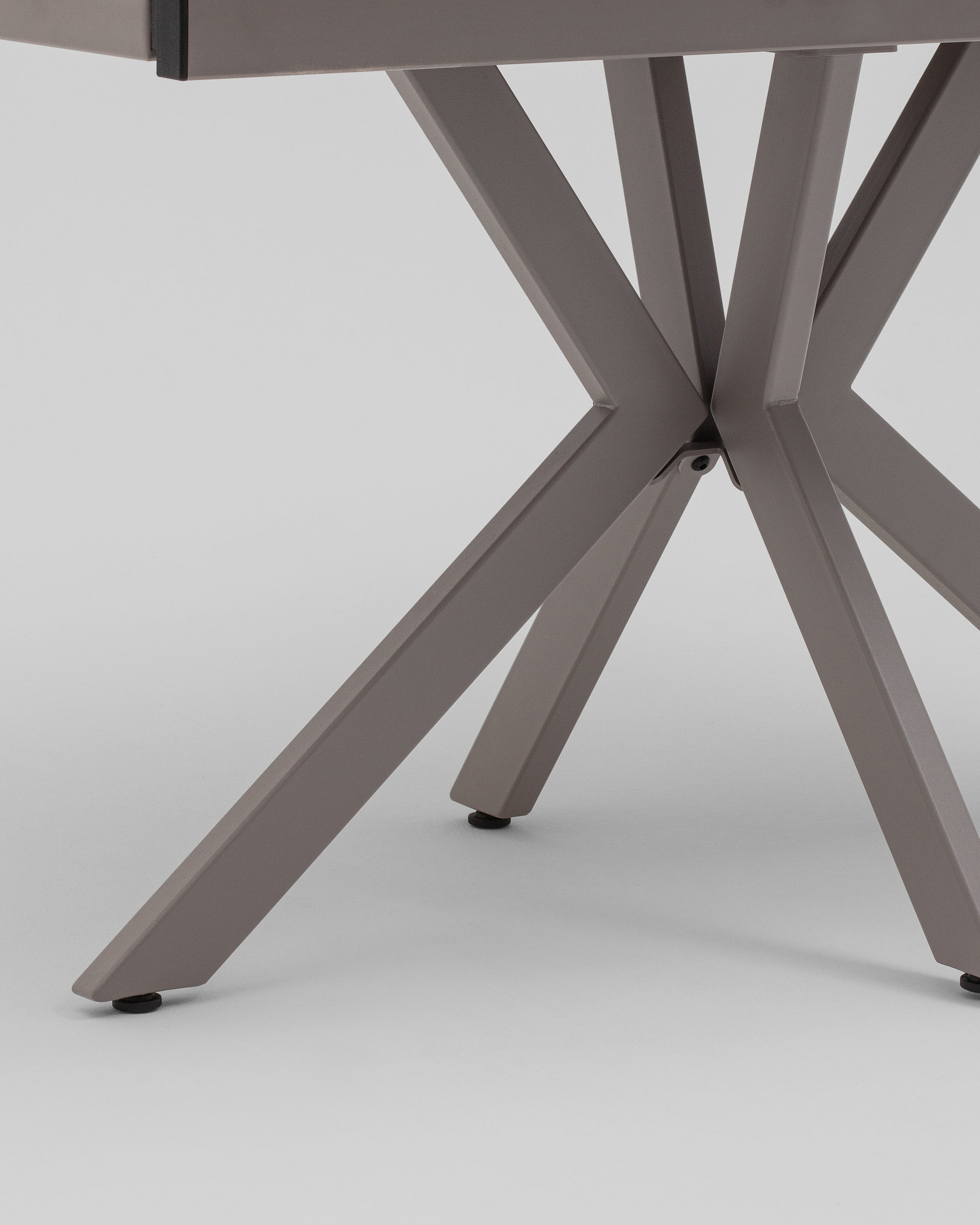 Столешница выполнена из прочной керамики на МДФ толщиной 16 мм — такой материал устойчив к механическим повреждениям, царапинам, высокой температуре и влаге. Он не требует сложного ухода и долго сохраняет первозданный внешний вид. Металлическое основание цвета капучино придаёт конструкции устойчивость и стильный контраст.