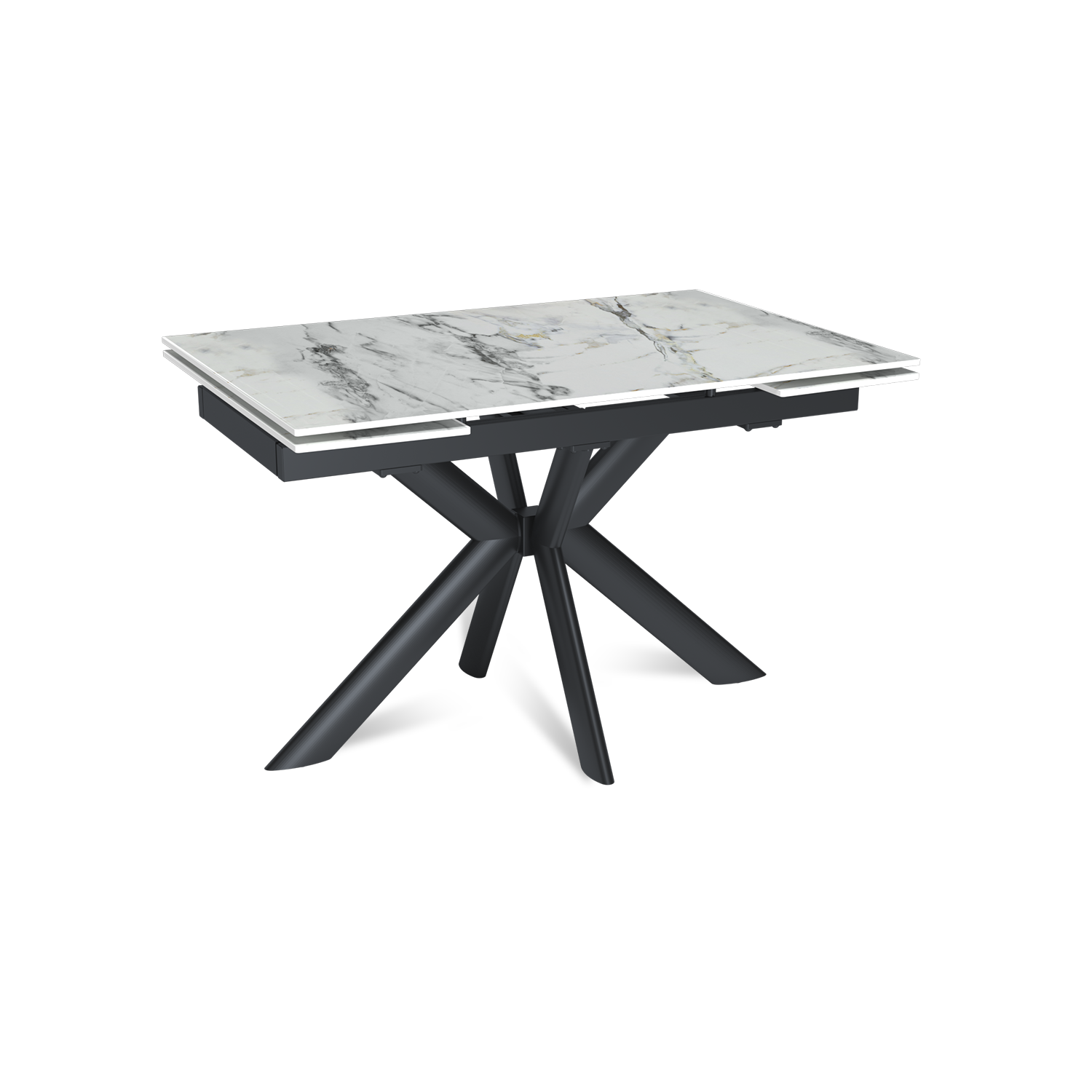 Стол «Strong» оснащен двусторонним торцевым механизмом, который обеспечивает плавное и бесшумное выдвижение боковых вставок по направляющим. Механизм позволяет гибко увеличить длину стола с базовых 120 см до 150 см (одна вставка) или до 180 см (обе вставки по 30 см каждая). Конструкция выдерживает нагрузку: до 50 кг на основную часть и до 15 кг на каждую выдвижную секцию.