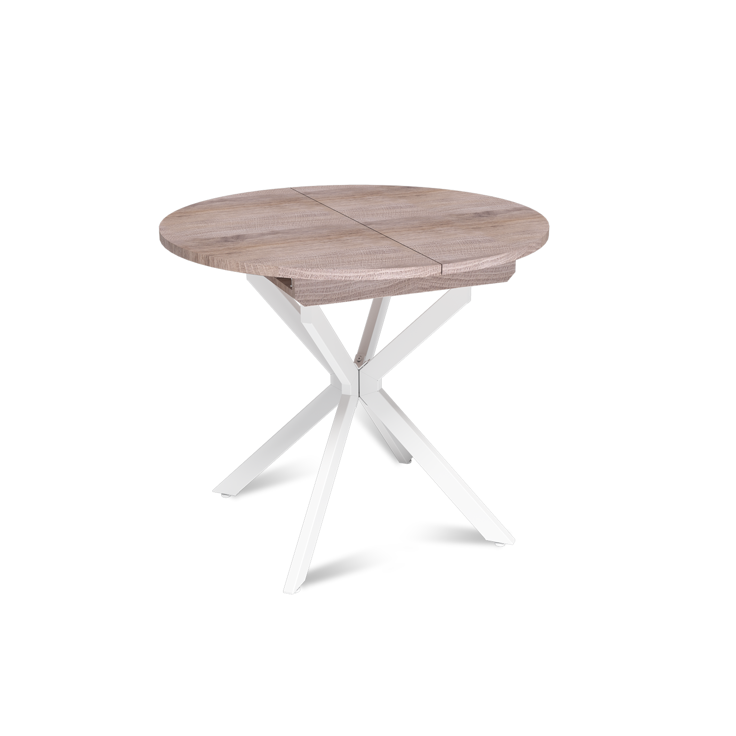 Стол круглый раздвижной Твист (90+30) дуб эндгрейн / опоры белые