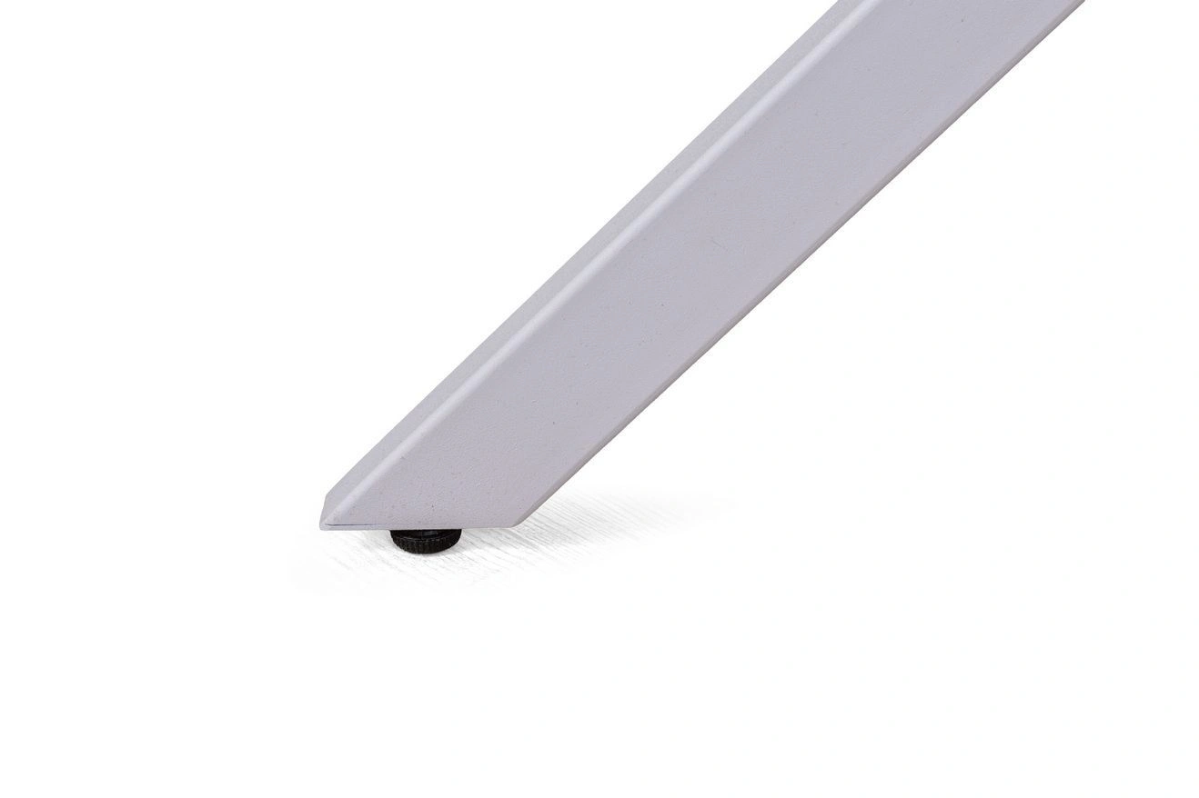 Металлические опоры стола окрашены методом порошковой окраски. Это обеспечивает высокую стойкость покрытия: оно не боится коррозии, сколов и царапин, сохраняя безупречный вид долгие годы. Чтобы исключить деформацию и продлить срок службы, предусмотрено дополнительное усиление опор в точках изгиба. Возможность регулировки опор по высоте компенсирует перепады и обеспечивает идеальную устойчивость на любом напольном покрытии.
