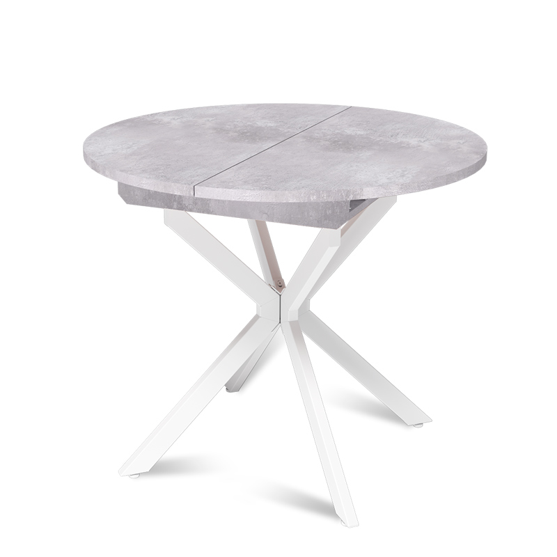 Запросить индивидуальное предложениеРаздвижной обеденный стол Твист разработан для малогабаритных кухонь и квартир-студий: в сложенном виде компактный и не занимает пространство, при необходимости легко раскладывается для гостей. Особая форма опоры позволяет беспрепятственно задвигать стулья под стол, делая посадку удобной. Модель выглядит актуально благодаря чистым линиям, спокойной текстуре столешницы «под дерево» и выразительной Х-образной опоре, которая и дала название линейке.