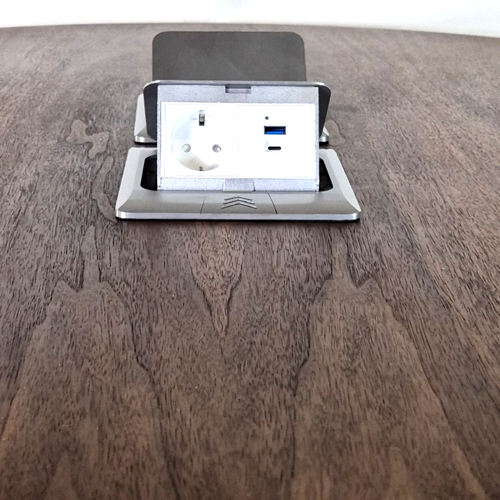 Функционал: выдвижной алюминиевый блок коммуникаций, встроенный в столешницу, включает: