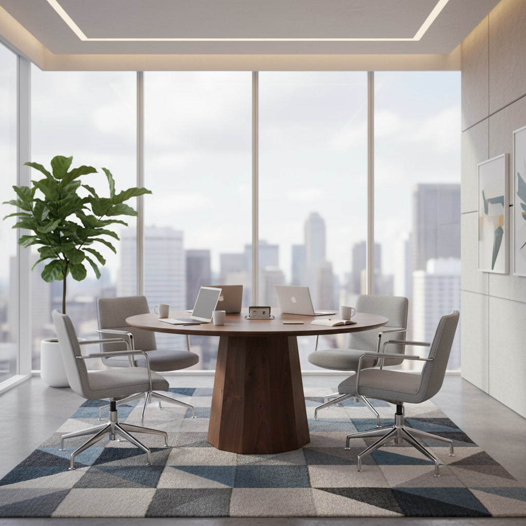 Стол подходит для переговорных зон, офисов, современных кабинетов и дизайнерских интерьеров.