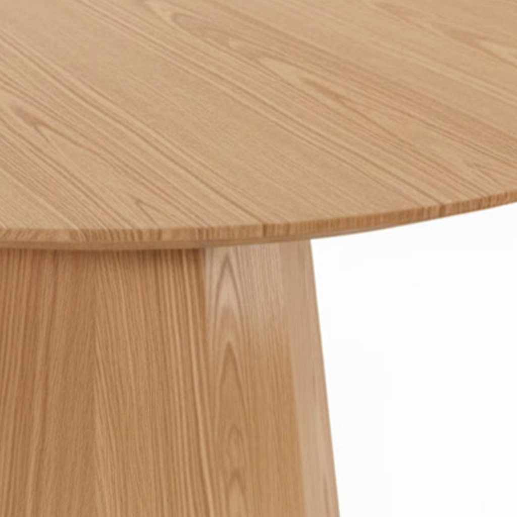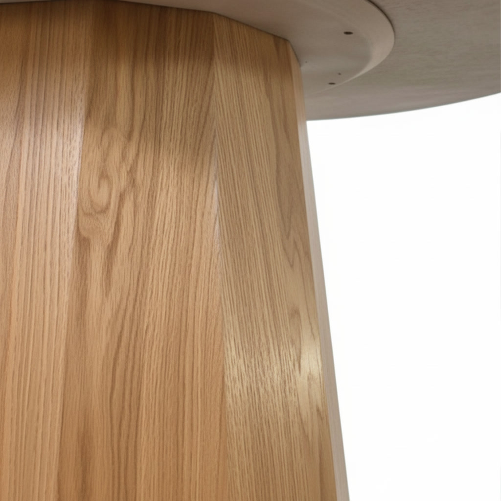 Натуральный дуб подчёркивает естественность материала, а строгая геометрия подстолья создаёт ощущение надёжности и порядка.