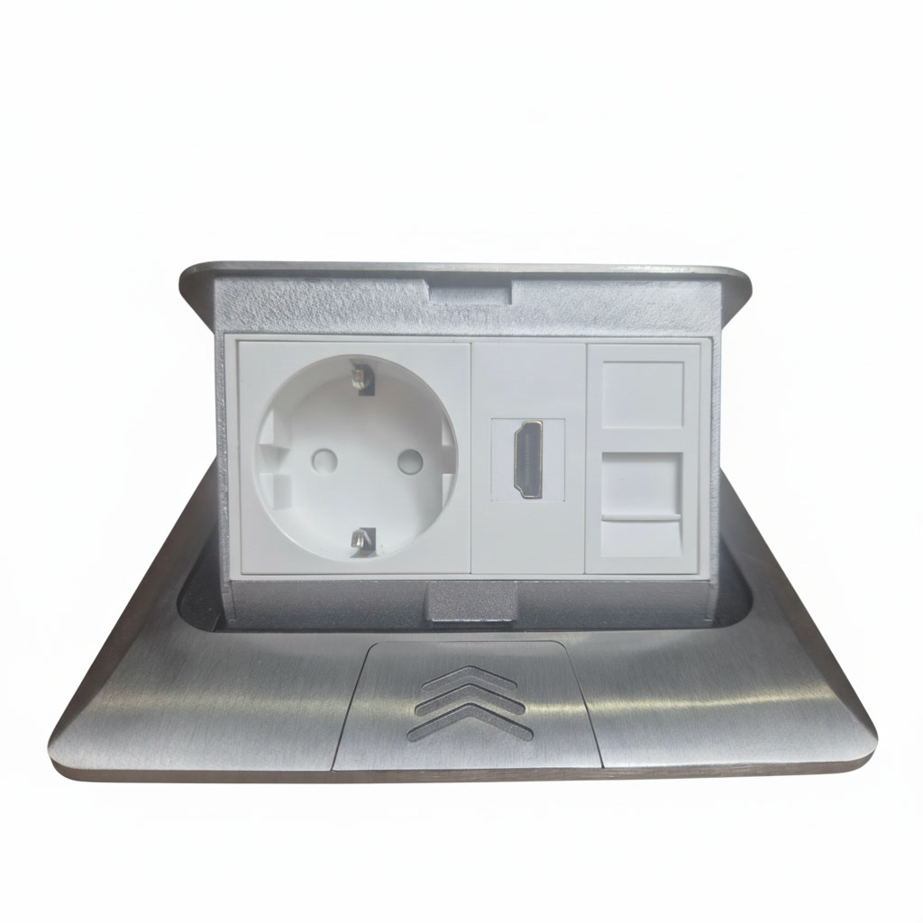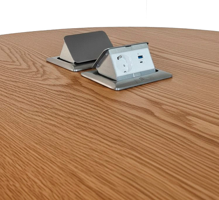 Интегрированный алюминиевый блок розеток добавляет функциональности, не нарушая чистоты формы.