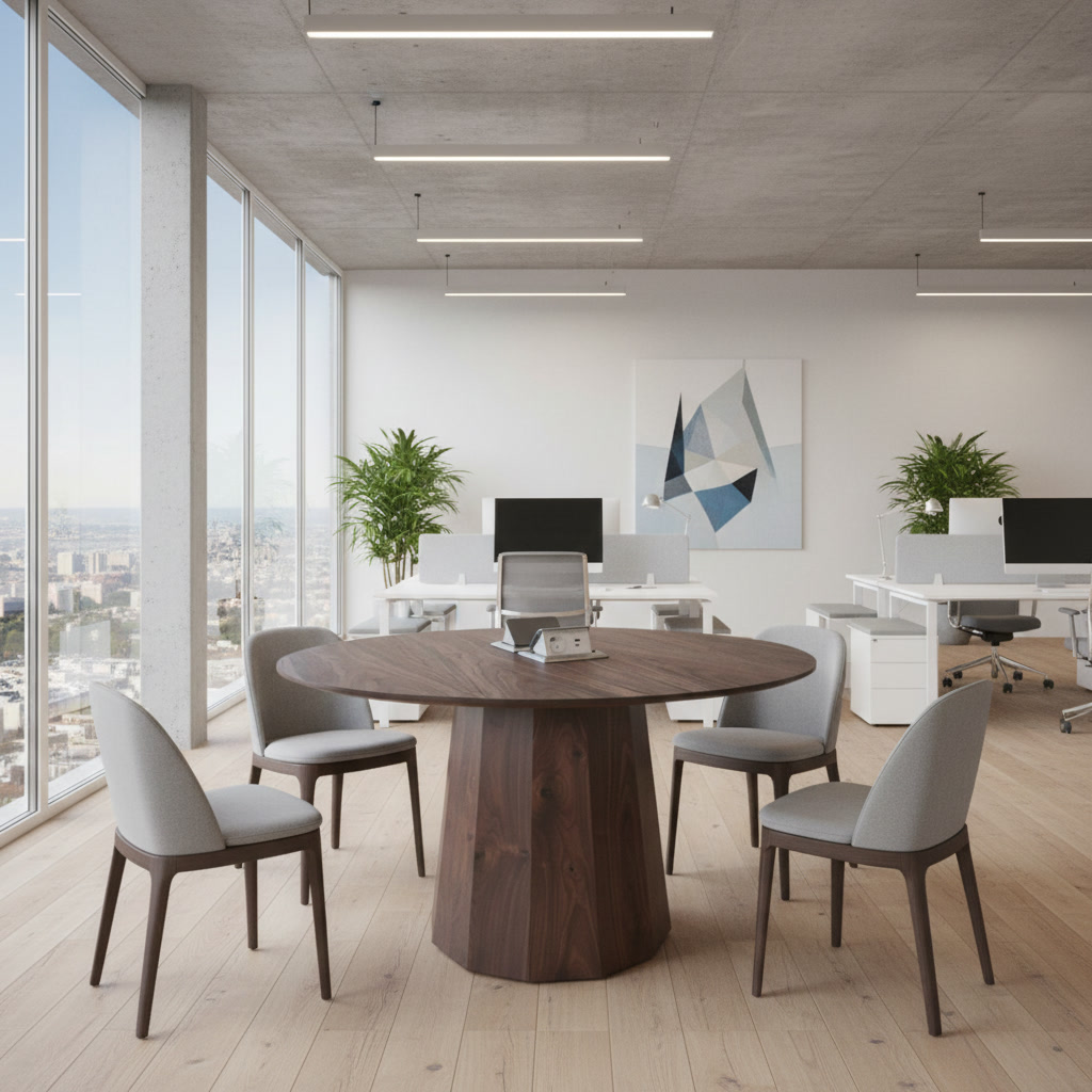 Стол подходит для переговорных зон, офисов, современных кабинетов и дизайнерских интерьеров.